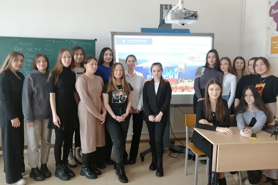 В рамках Дня воссоединения Крыма с Россией прошел кураторский час со студентами 2412, 0412 гр. отделения психологии и педагогики. Под руководством куратора Миннуллиной Розалии студенты 3 курса 0412 гр. подготовили и провели викторину на тему: «Крым – это Россия!».