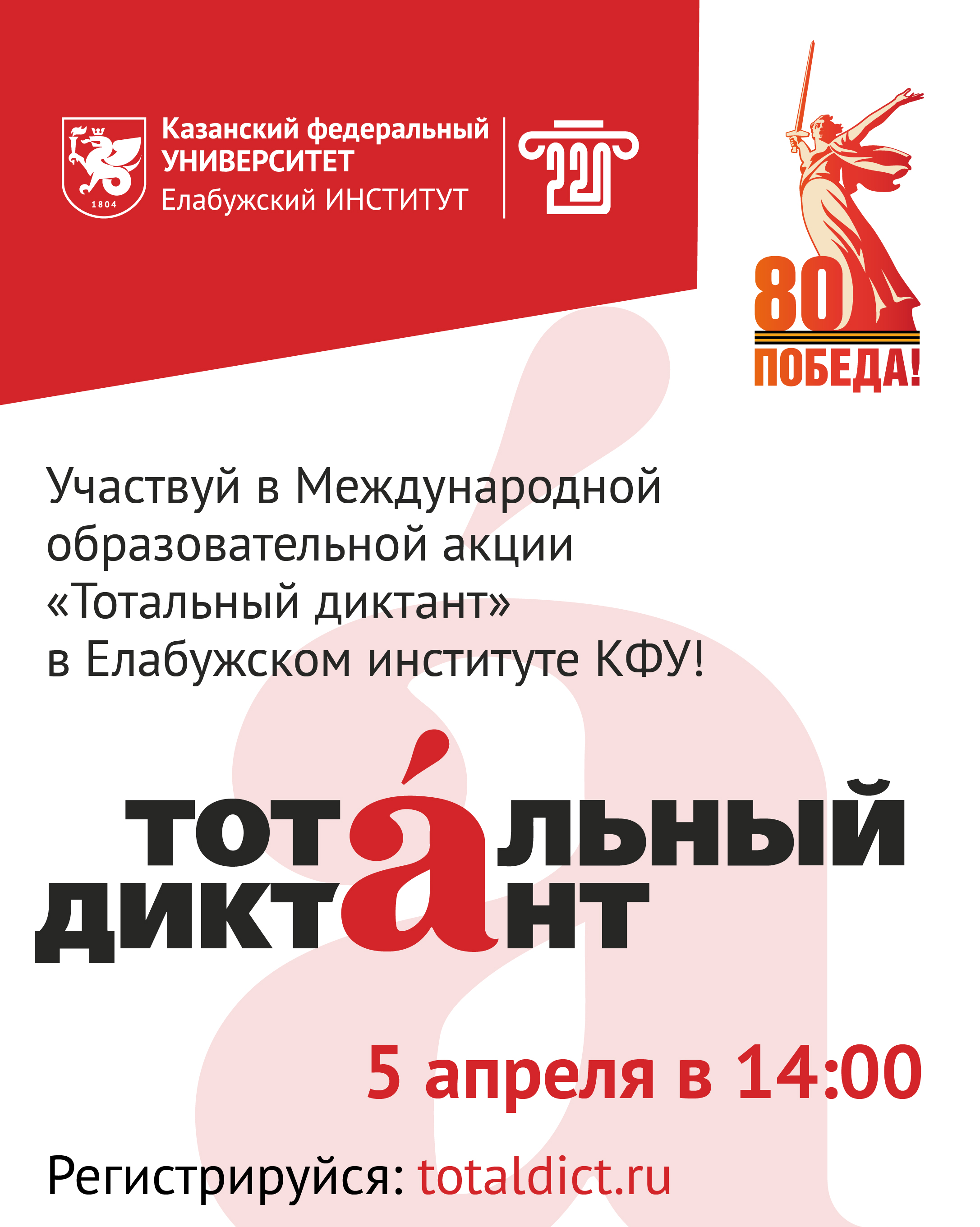 5 апреля в 14:00 в Елабужском институте КФУ пройдет ежегодная образовательная акция «Тотальный диктант»!