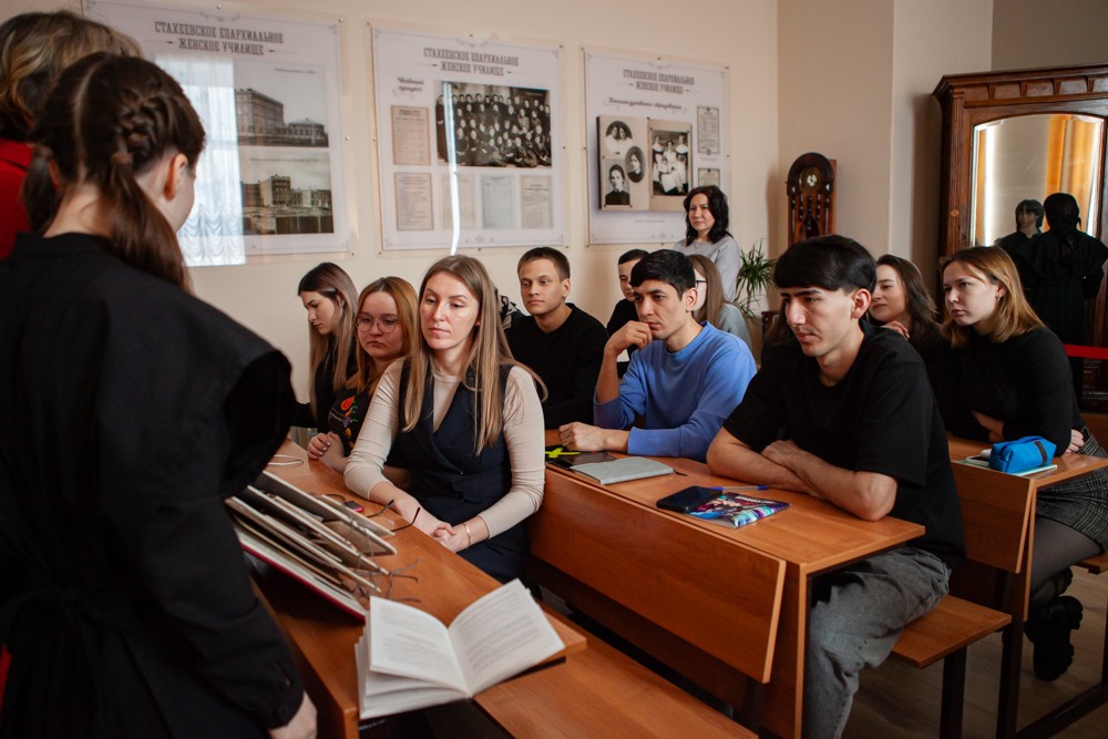 «Готовить проектную работу мы начали еще летом. Просмотрели проекты других участниц, они брали за основу образы героев мультфильмов, сказок. Мы тоже стали подбирать героя из мюзиклов, фильмов. Но Инга Владимировна подсказала нам другую идею. Я увидела книгу по истории института, там рассказывалось о жизни воспитанниц Епархиального училища. Тогда мы подумали, что я как раз их возраста и решили создавать именно этот проект», − рассказала Залина.