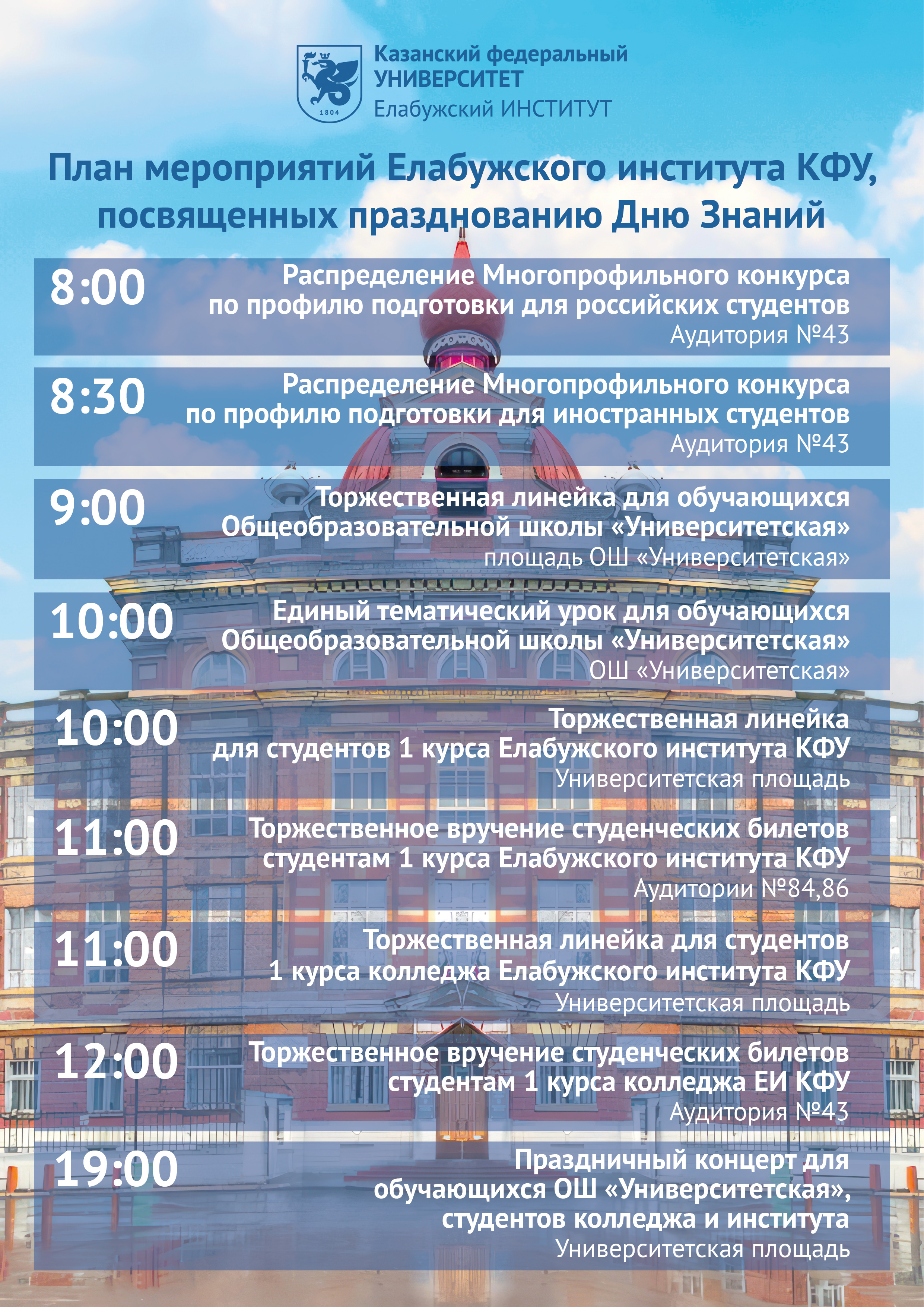 Елабужский институт КФУ приглашает студентов, школьников и всех елабужан на масштабное празднование Дня знаний! Торжественные мероприятия начнутся утром и продлятся до вечера.