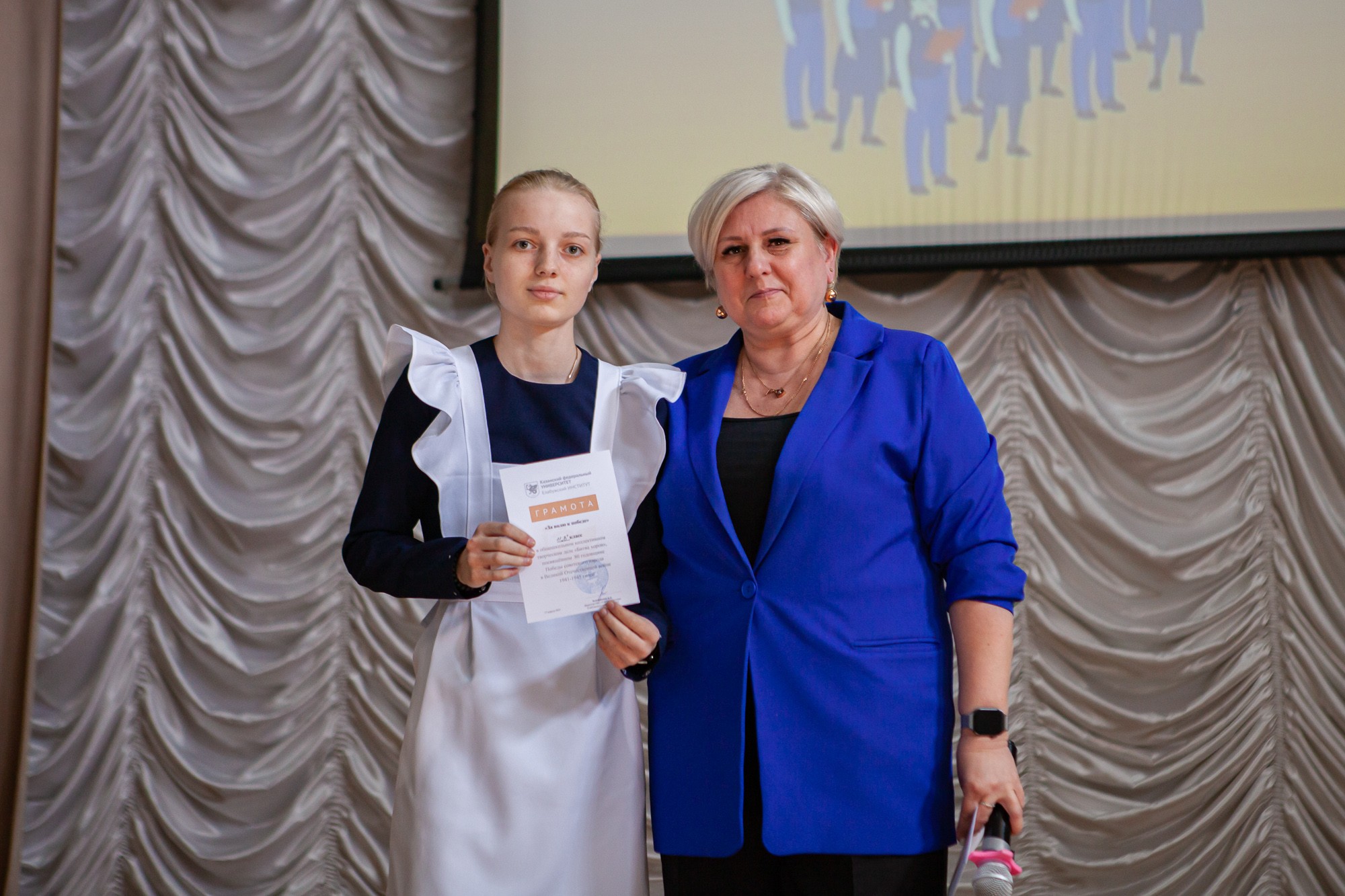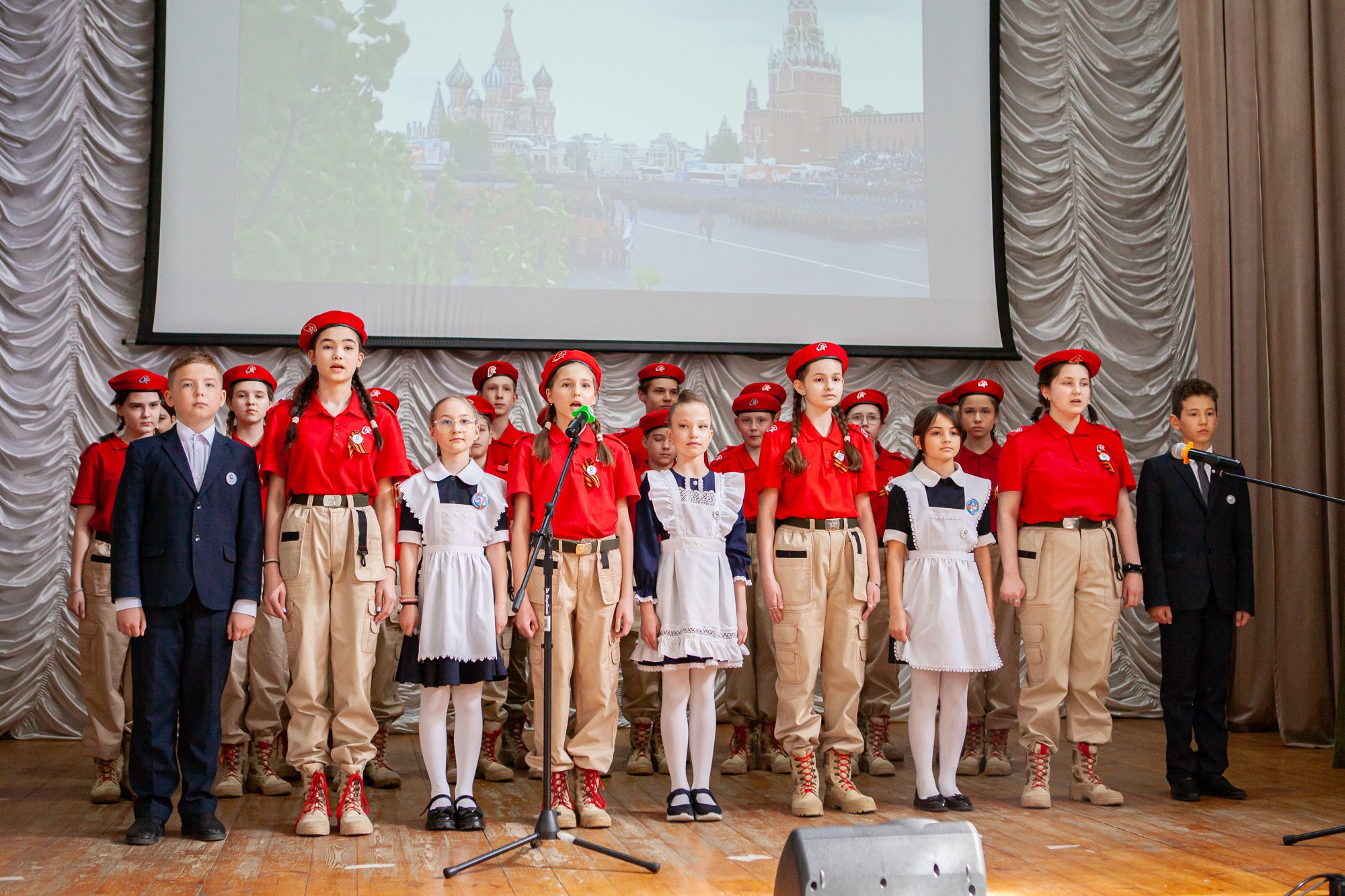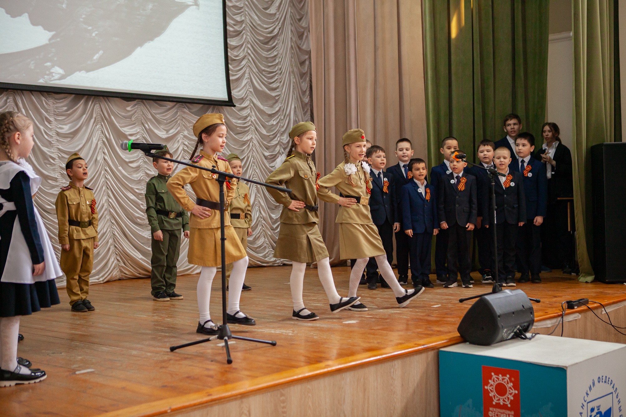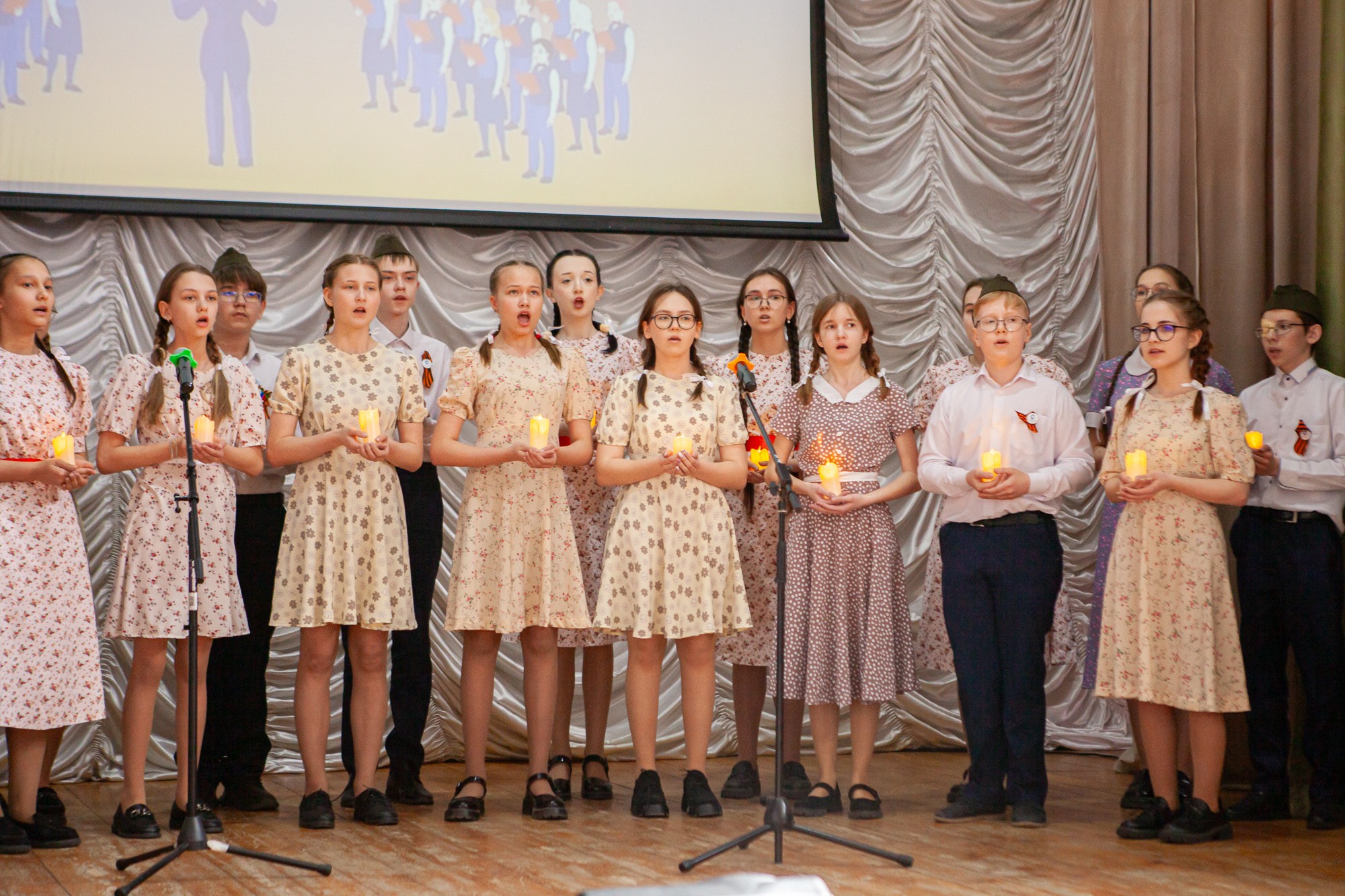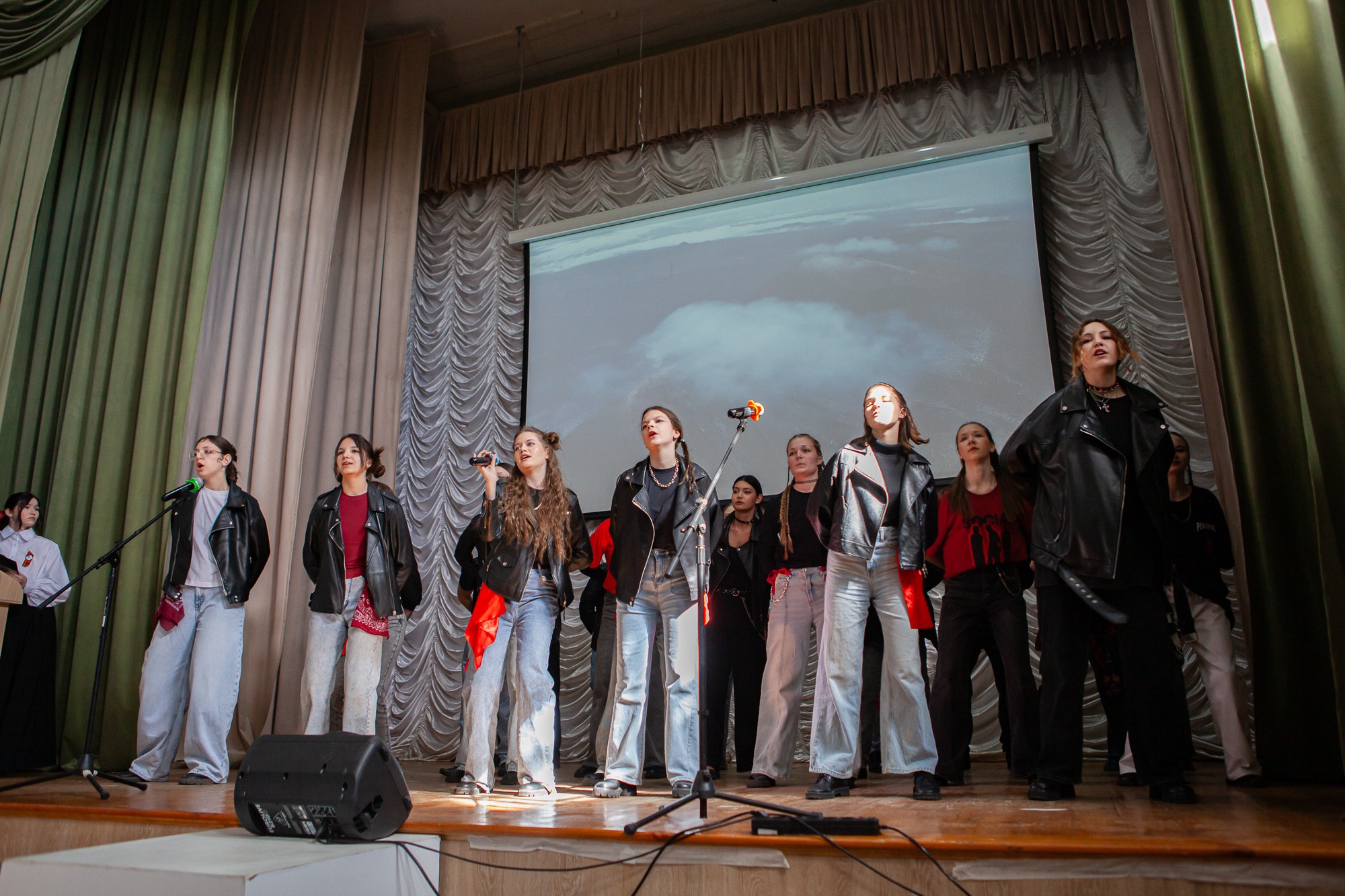Со сцены актового зала звучали песни, пропитанные духом военного времени: «Катюша», «Закаты алые», «Смуглянка», «Родина-мать». Ребята с трепетом и уважением передавали через музыку память о героях, приближавших Победу ценой собственной жизни.