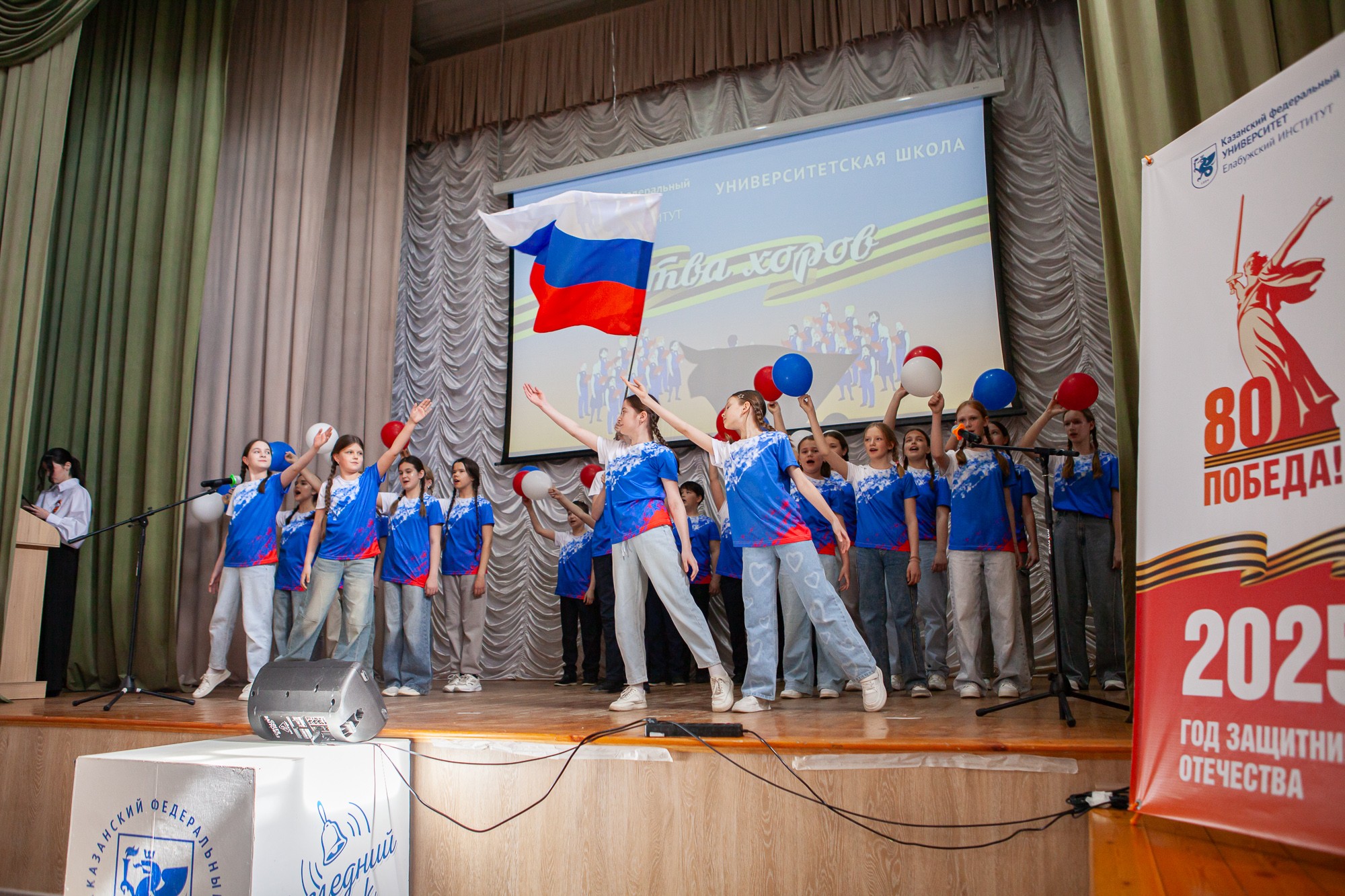 В преддверии великой памятной даты — 80-летия Победы в Великой Отечественной войне — в Елабужском институте КФУ состоялся патриотический конкурс «Битва хоров». Участниками музыкального праздника стали ученики «Университетской» школы, подготовившие выступления, посвящённые подвигу нашего народа и любви к Родине.