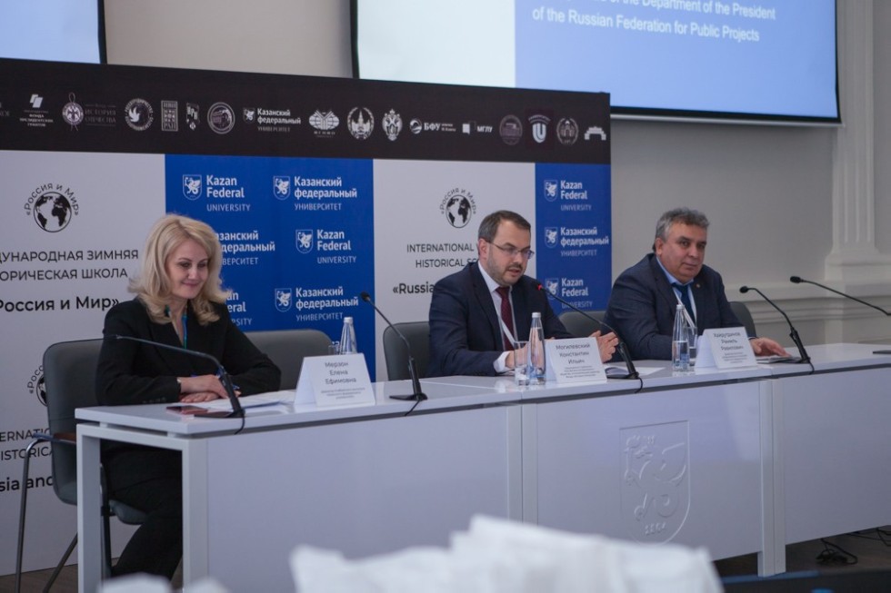 On behalf of the Rector Ilshat Rafkatovich Gafurov, Elena Efimovna expressed deep gratitude to the Russian Historical Society for giving Kazan Federal University the opportunity to be part of a significant international project. The Director invited Konstantin Mogilevsky, Chairman of the Board of the Russian Historical Society, Executive Director of the History of the Fatherland Foundation, to sum up the results of the Second Stage of the International Winter Historical School.