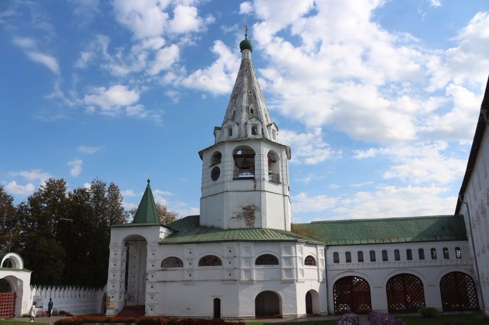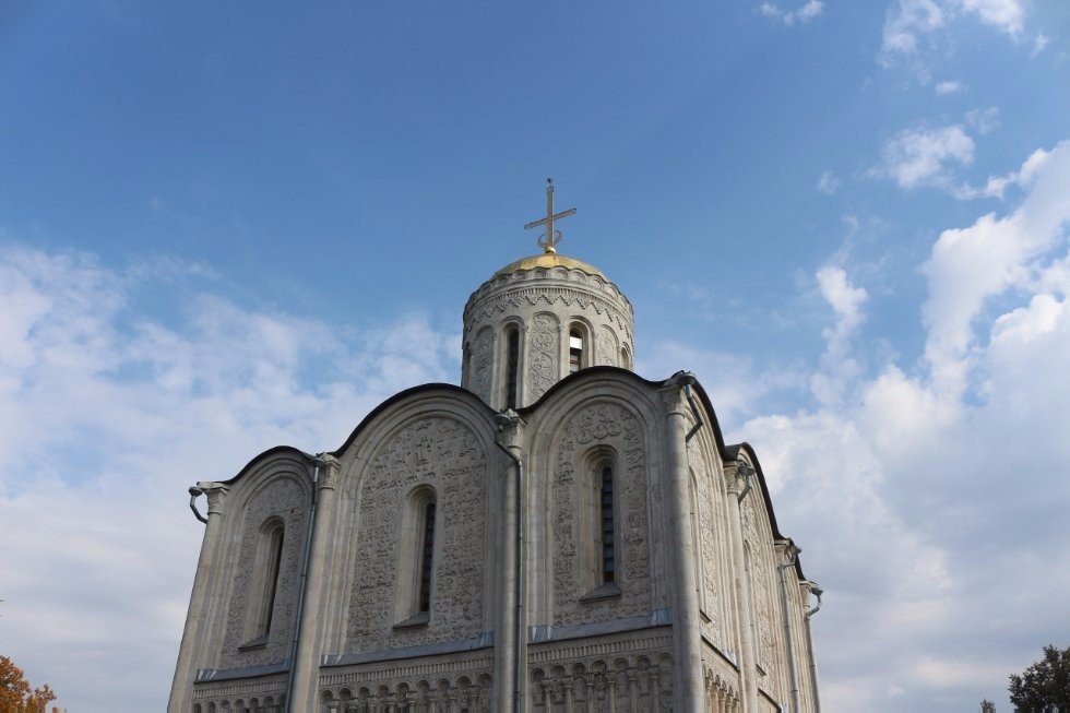 Golden Gate, the Cathedral of the Assumption, Cathedral of St. Demetrius and some other cultural monuments. This is a monument to St. Vladimir. Click and frame, click and frame, the camera will not turn off even for a minute. The guide tells something of the baptism of Rus’, on the planning of the city. A moment later, and we are back in the bus. And outside autumn forest, and now Vladimir behind, and we are coming to Suzdal.