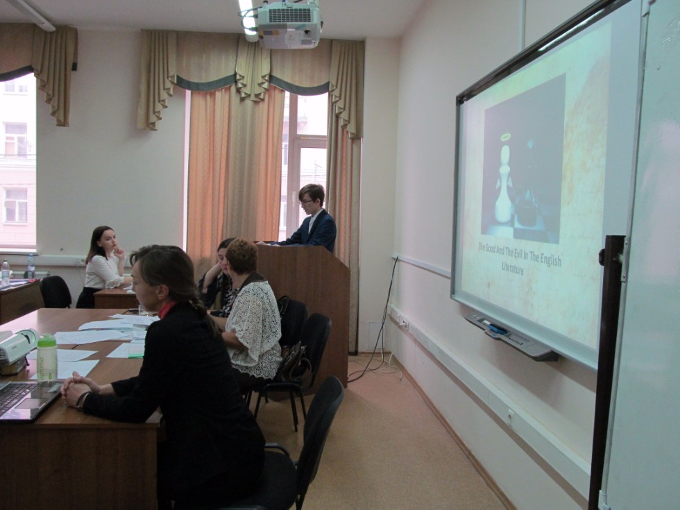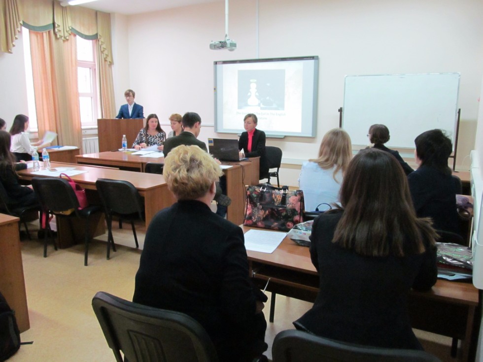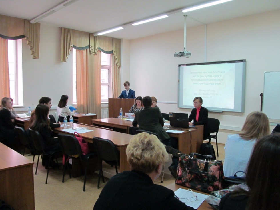 November 2, 2017 at the Institute of Philology and Intercultural Communication named after Leo Tolstoy, within the framework of the All-Russian scientific conference-competition of students named after Leo Tolstoy, a meeting of the section "Lexis and phraseology of the English language in synchrony and diachrony" in the focus area “Germanic and Romance languages in the modern world” was held. Twelve participants, schoolchildren of 8,9,10,11 classes of schools and gymnasiums of Kazan, Nurlat, Orenburg, Ulyanovsk took part in the work of the section. The reports were devoted to the results of independent studies, which were carried out in the field of comparative linguistics. Subjects of the reports were diverse: limericks, sequins, neologisms, Anglicisms, English phraseology, American and British variants of English and other topics. The students demonstrated the knowledge of languages, the basics of linguistics and phraseology. After the reports, the speakers were asked questions which revealed the essence of the research and motivated schoolchildren to continue their scientific activities. The Section was headed by Doctor of Philology Kayumova D.F., with the experts Guryanov I.O., Safiullina G.R. The schoolchildren were invited to further active participation in the All-Russian scientific conference-competition of students named after Leo Tolstoy.
