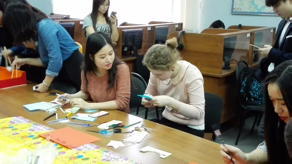 Among the guests of the event were students from Russia, Vietnam, Tajikistan and Europe. The first part of the event was dedicated to a theoretical acquaintance with China; the guests had a chance not only to listen to the reports on various aspects of the Chinese culture, but also to see films and presentations. Then the master’s students held different master classes, where everyone could practice calligraphy, paper cutting, using chopsticks, and learn to play the traditional Chinese game midyan (Mahjong).