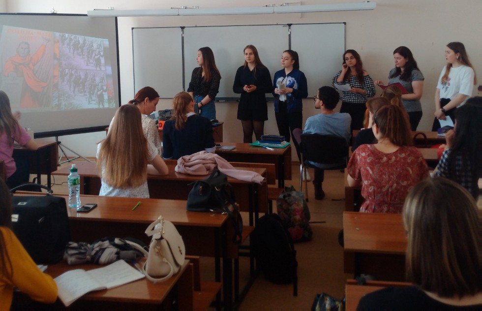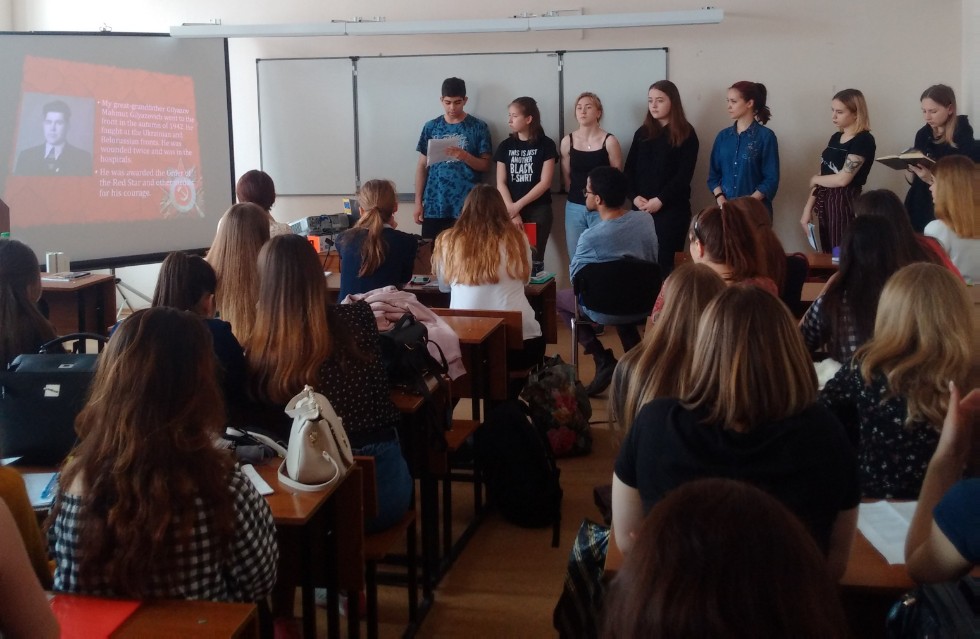 Within the lesson of "Intercultural communication" an event devoted to the Victory Day was held. It was organized by the teachers Mingazova Nailya Gabdelkhamitovna and John Leake.