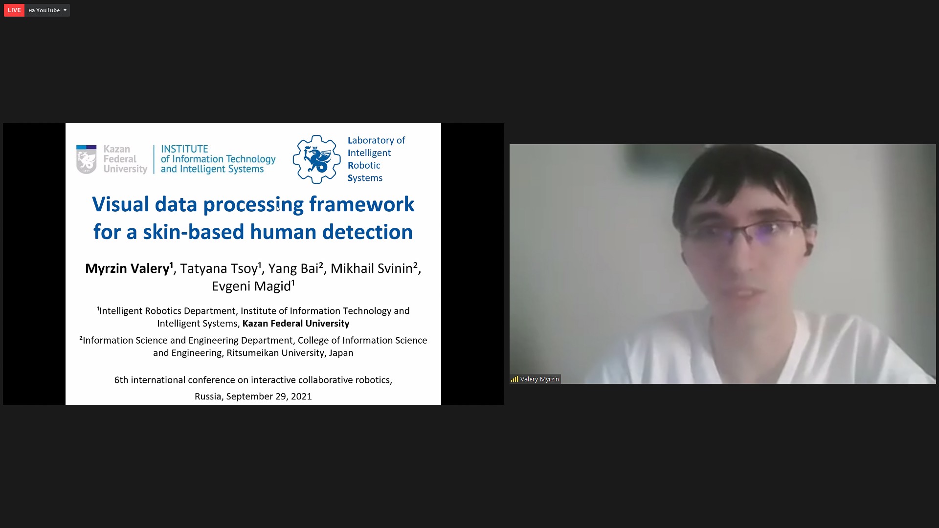 «Visual Data Processing Framework for a Skin-Based Human Detection». Authors: Valery Myrzin, Research Associate Tatyana Tsoy, Yang Bai, (Ritsumeikan University, Japan) Mikhail Svinin (Ritsumeikan University, Japan) and Professor Evgeni Magid.