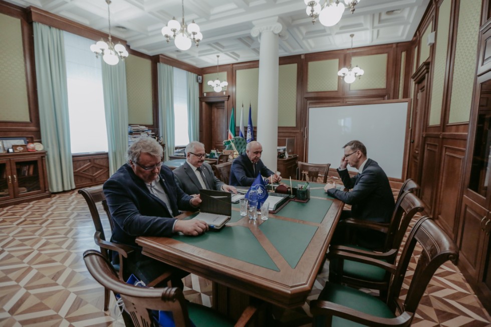 Rector of Gomel State University Sergey Khakhomov is one of the guests of the ongoing Gromyko Readings. Rector of KFU Ilshat Gafurov invited Dr. Khakhomov for a meeting on 11th October.