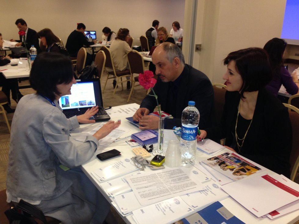 Kazan University was presented by the leading specialist from the Unit of cooperation development at the External Relations Office Chulpan Gazieva. In the framework of meetings with 12 recruiting agencies Chulpan made a presentation of Kazan University, its academic and scientific potential, told about learning environment, housing facilities and Universiade. In spite of the fact that Kazan University participated in this event for the first time, it has successful results. The University could arrange on cooperation with a number of recruiting agencies such as “Centre of international programs” at the Ministry of Education and Science of Kazakhstan, Learning Vision (Great Britain), Deloy Consulting (Nigeria), END International Education (Turkey). Representatives from the above mentioned organizations expressed desire to visit Kazan University in order to get acquainted with its opportunities and sign Agreement on cooperation. Some of these agencies are ready to send students for training even this year.