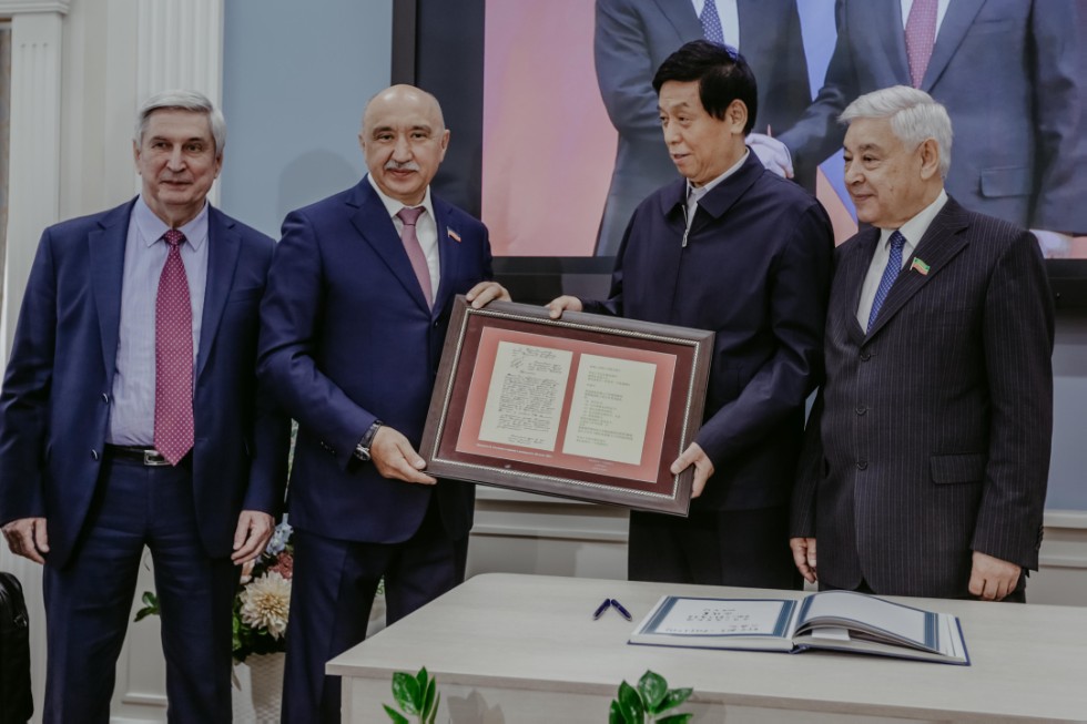 The guests proceeded to look at the memorabilia in the History Museum, paying special attention to items tied to Vladimir Lenin and Leo Tolstoy. Li Zhanshu left a note in the University’s guestbook, and Rector Gafurov gave him a gift – a copy of Lenin’s university application and its translation into Chinese language.