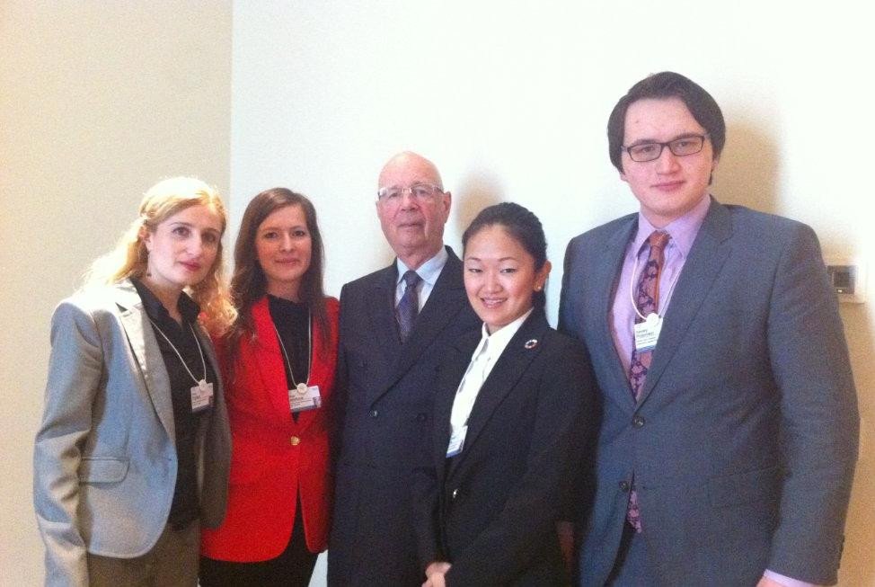 Furthermore, the Executive Director of the World Economic Forum, Claus Schwab, met with 4 representatives of the Global Shapers Community, working with youth and students: Aleksey Potyomkin (Moscow, Russia), Dilbar Sadykova (Kazan, Russia), Zinaida Kan (Astana, Kazakhstan), Irina Puidze (Tbilisi, Georgia).