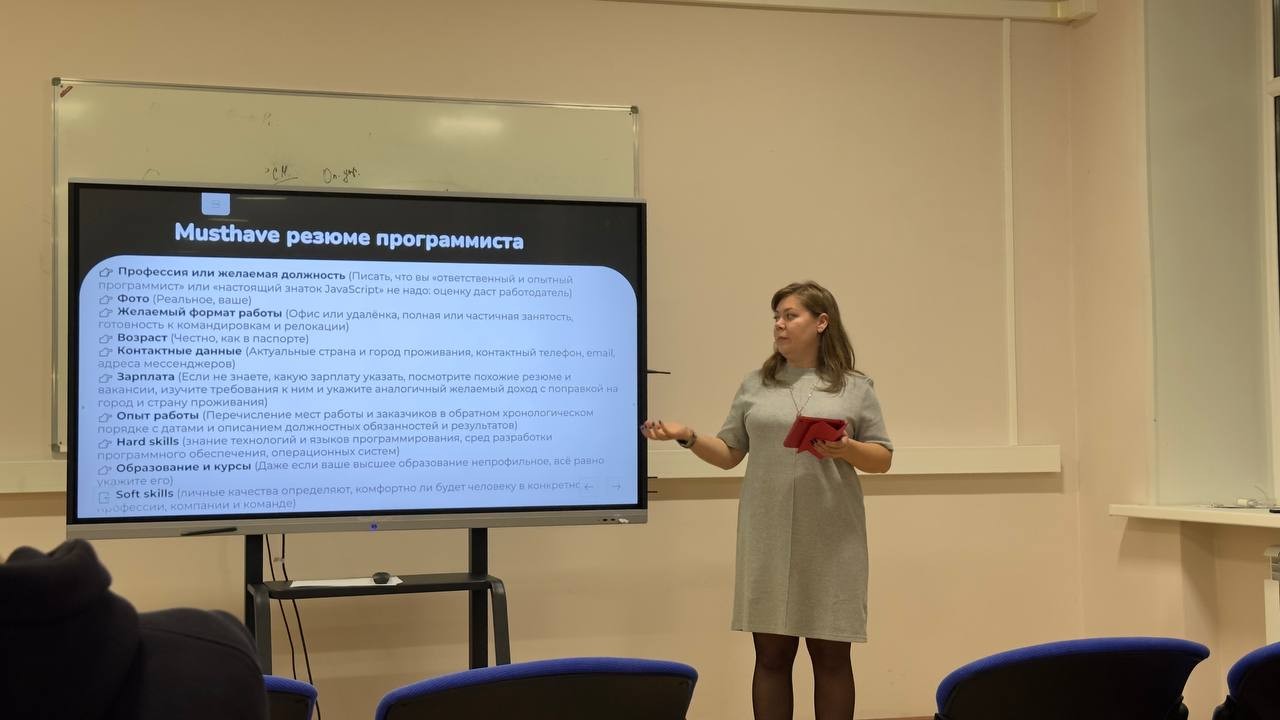 Кроме того, участникам рассказали о различных форматах резюме, таких как хронологическое, функциональное и комбинированное, и объяснили, когда какой формат лучше использовать.