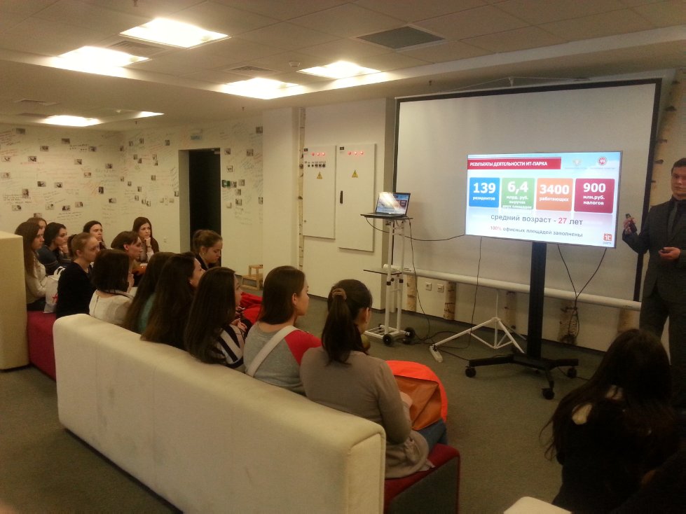 Неудивительно, что ИТ-парк пользуется в Казани огромной популярностью и вызывает живой интерес у студентов любых специальностей. Так, и студенты первого курса Института экономики и финансов КФУ тоже не остались в стороне и с огромным удовольствием посетили уникальный технопарк. Ребята были наслышаны об ИТ-комплексе, но для большинства этот визит был первым знакомством с ним. Гостеприимные работники парка провели экскурсию по комплексу, рассказали о его истории и познакомили с резидентами парка.