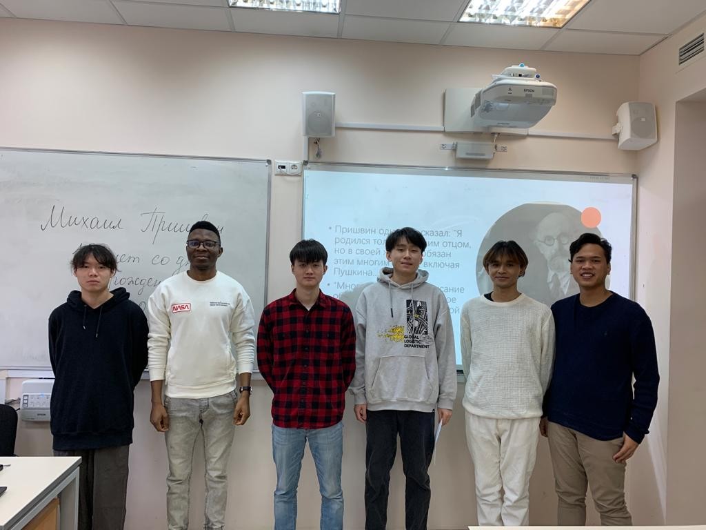 В Институте международных отношений прошел вечер «Единство человека и природы», посвященный 150-летию со дня рождения М. М. Пришвина, русского и советского писателя, прозаика и публициста. Студенты-иностранцы 3 курса Высшей школы международных отношений и востоковедения под руководством преподавателя кафедры иностранных языков в сфере международных отношений Е.А.Бажановой подготовили выступления об этом удивительном человеке, так утонченно и точно повествующего в своих произведениях о единстве природы и человека, о философии жизни, о нравах и обычаях русских людей. Увлечение этнографией и фольклором, охотой и дикой природой вдохновило М. Пришвина на путешествие по Северу России. Результатом стали произведения, где птицы, животные, пригорки, болота, леса, реки предстают перед читателем удивительно живыми, обнаруживают свою тесную связь с человеком, заставляют задуматься о роли каждого живого существа в этой жизни.