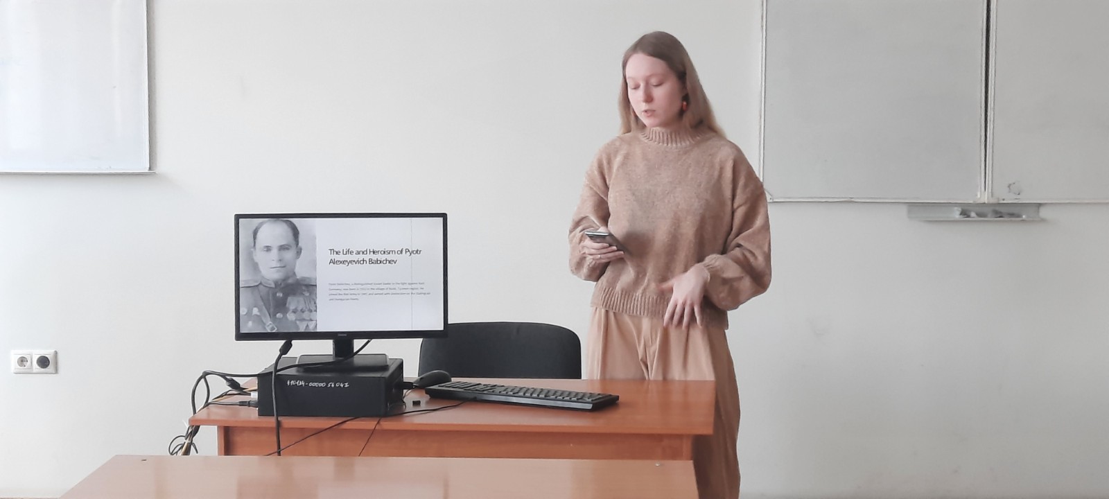 11 апреля студенты группы 04.3.404 и 04.3-309 на занятии по практическому курсу английского языка почтили память своих прадедушек и прабабушек, сражавшихся на передовой и в тылу во время Великой Отечественной Войны. Студенты выступили с презентацией на английском языке и рассказали о подвигах, ранениях и наградах своих предков, показали фотографии тех, кто еще жив и тех, кого давно нет с нами. Развитие патриотического и духовно-нравственного воспитания молодежи является важнейшей социальной потребностью общества. Научить подрастающее поколение уважать, помнить и чтить традиции, историю, любить родной край, город, народ, который в нем живёт, значит укрепить основы государственности. В конце занятия преподаватели и студенты во время минуты молчания вспомнили истории о героизме, любви и сострадании, которые навсегда останутся в нашей памяти.