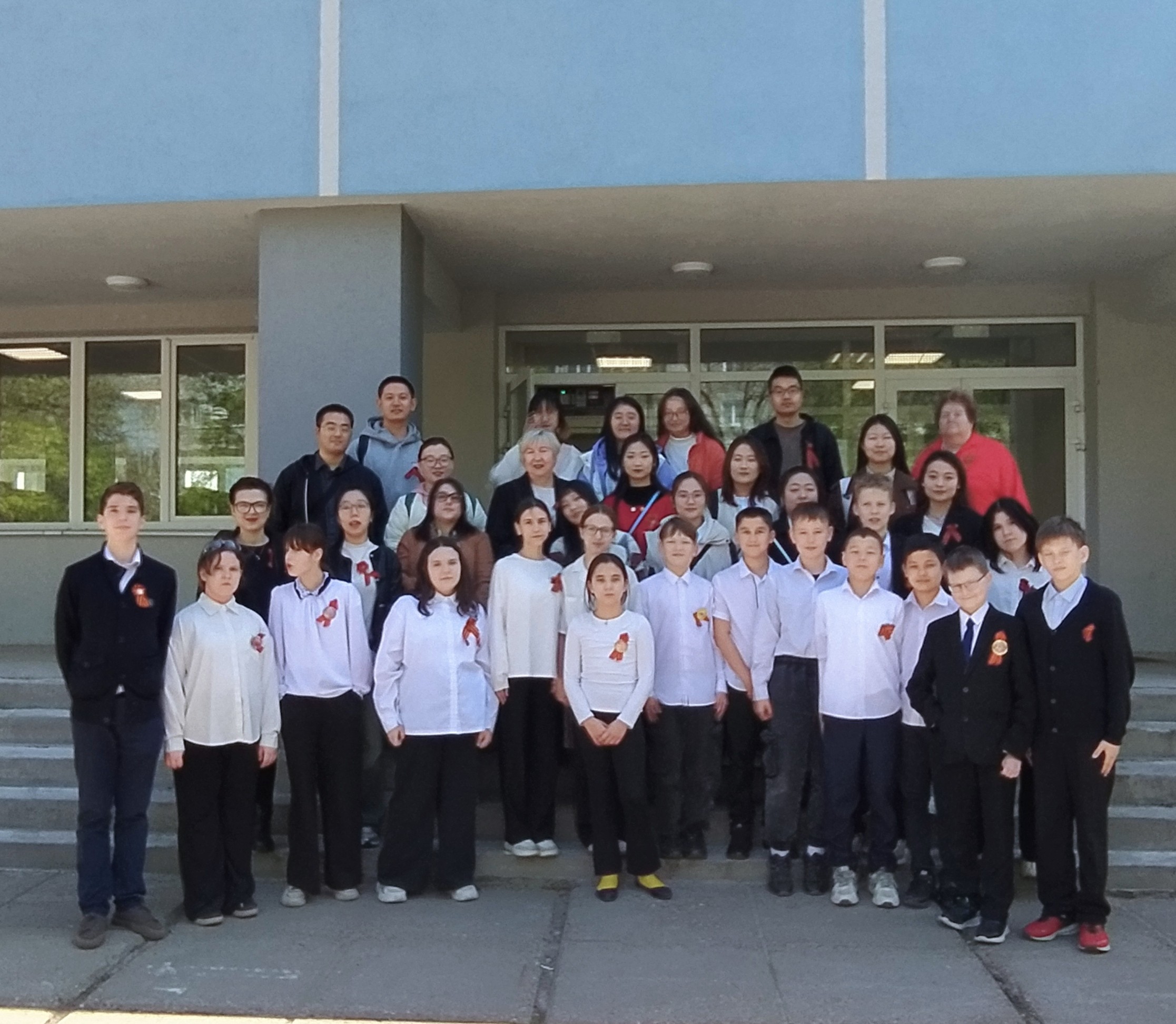 Накануне Дня Великой Победы иностранные магистранты высшей школы иностранных языков и перевода (гр.04.3-415) посетили среднюю общеобразовательную школу №85 с углубленным изучением отдельных предметов, чтобы своими глазами увидеть, как дети в России встречают главный праздник России. Сначала студенты из Китая, Южной Кореи, Турции и Узбекистана, изучающие в ИМОИиВ русский язык, познакомились с пятиклассниками и приняли участие в классном часе, посвященном Дню Победы. Затем состоялся праздничный концерт, который начался с выступлений студентов. Кашапова Динара (Узбекистан) прочитала стихотворение Мусы Джалиля «Чулочки», а Каяпынар Айшенур (Турция) выступила с проникновенными строками К.Симонова «Жди меня». Во время концерта был также показан видеоролик, записанный Цинь Сюецзе из Китая, которая прочла стихи Риммы Казаковой «На фотографии в газете». С огромным интересом иностранные студенты посмотрели музыкально-литературную композицию, подготовленную учениками младших и средних классов, а после концерта состоялось знакомство с ветеранами-учителями. Закончился праздничный «урок» длиною в день неформальным общением и совместным исполнением песни Катюша на русском языке.