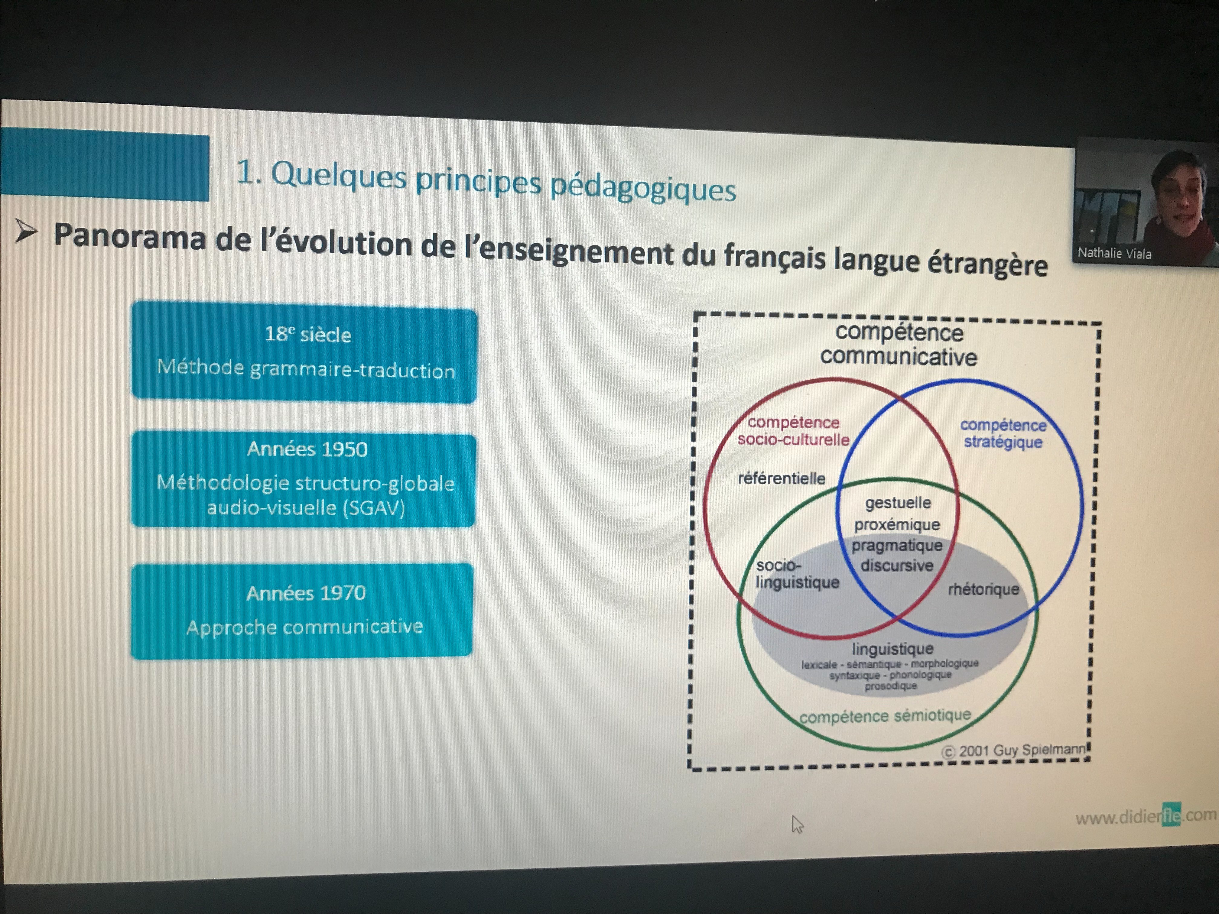 42 занятия с 40 высококвалифицированными специалистами из России, Франции, Бельгии, Швейцарии, Канады и стран Магриба, аккредитованных Международной федерацией преподавателей французского языка, соответствовали уровню С1/С2. Все занятия были полезны и актуальны, но особое впечатление оставила встреча с известной современной переводчицей русской литературы Анн Колдефи-Фокар (Anne Сoldefy-Faucard), на которой она рассказала о своём опыте адаптации одной культуры к другой и сложностях перевода. Анн перевела на французский язык Мертвые души Гоголя, Шатунов Мамлеева, Красное колесо Солженицына, Теллурию Владимира Сорокина и др. Анн ведёт семинарские занятия по художественному переводу в Сорбонне и Лозаннском университете. Анн всегда мечтала перевести Мёртвые души Гоголя, существует семь переводов на французском языке, но французы, читая эту книгу, никогда не смеялись, потому что в переводе сокращались авторские отступления, из-за этого терялся весь комический эффект.