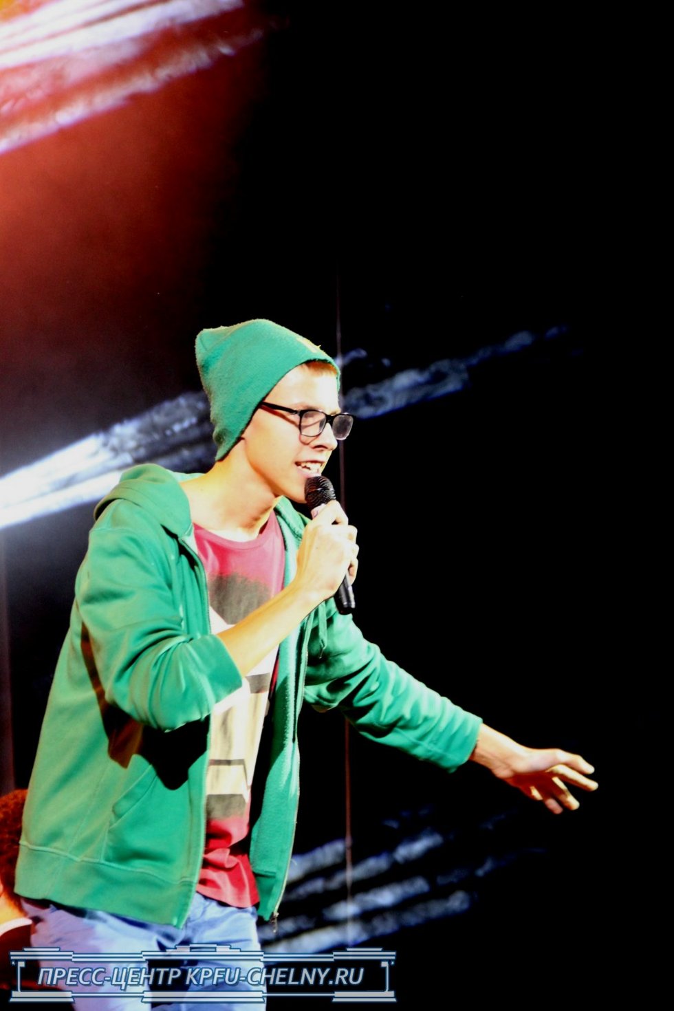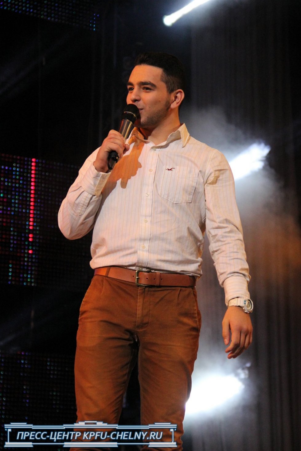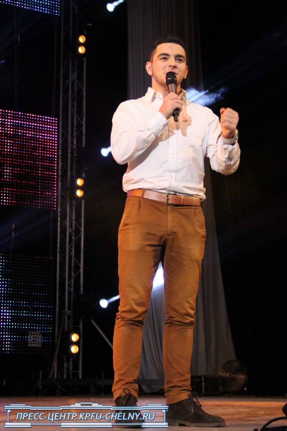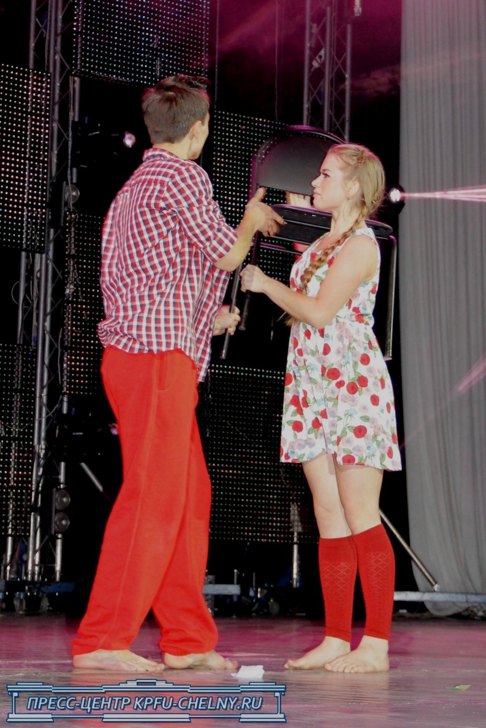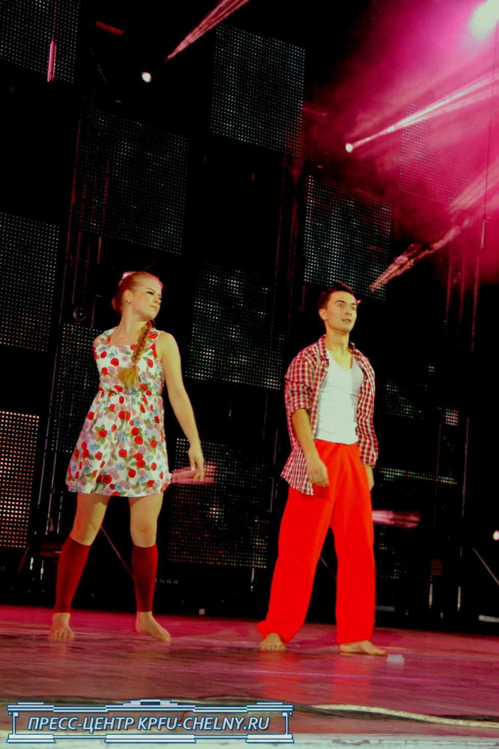 Запущена карусель концертной программы. Здесь поют песни, которым волей-неволей начинаешь подпевать, танцуют зажигательные танцы, во время которых ноги начинают отбивать ритм музыки, театральные постановки и номера оригинального жанра срывают аплодисменты зрителей. Не позавидуешь работе жюри, ведь перед нами творческие коллективы, которые прошли отбор и доказали, что достойны выступать на гала-концерте. Интересно наблюдать и за реакцией публики, как она встречает первокурсников и поддерживает их. Здесь по-настоящему чувствуется дух студенчества, который делает тебя, хоть и маленькой, но значимой его частью. Набережночелнинский институт КФУ в гала-концерте представляет пара Марселя Автулева и Элеоноры Гайнуллиной строительного отделения с танцевальным номером «Самба».