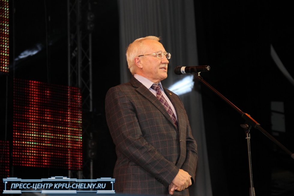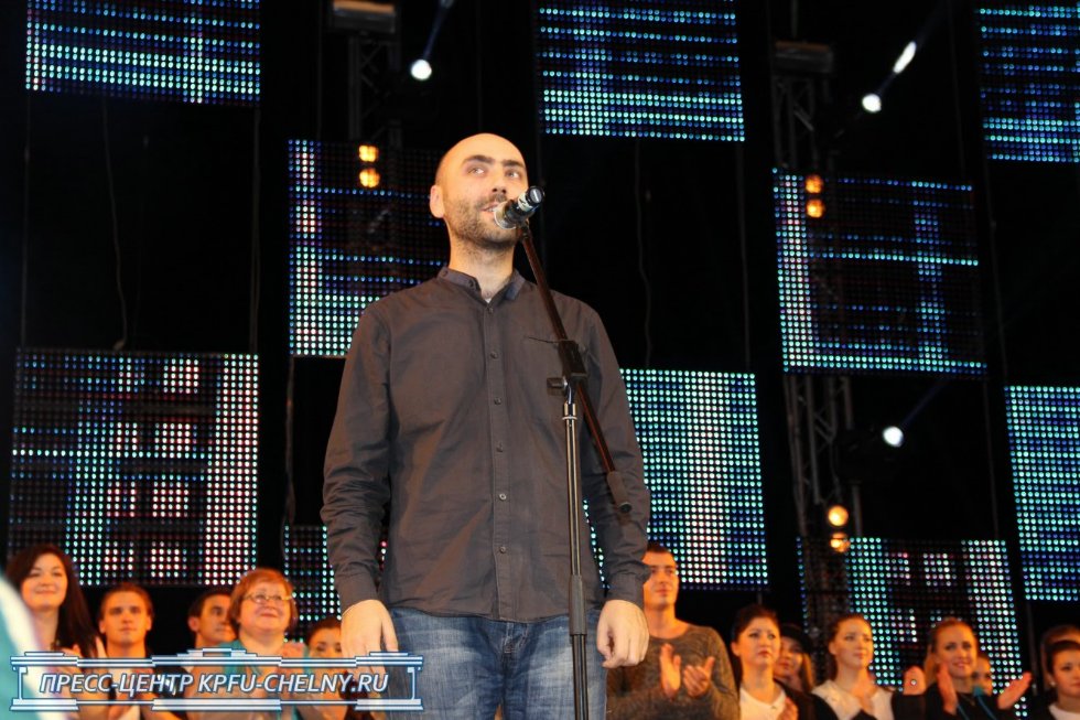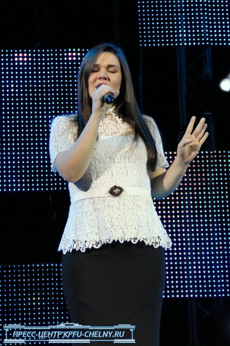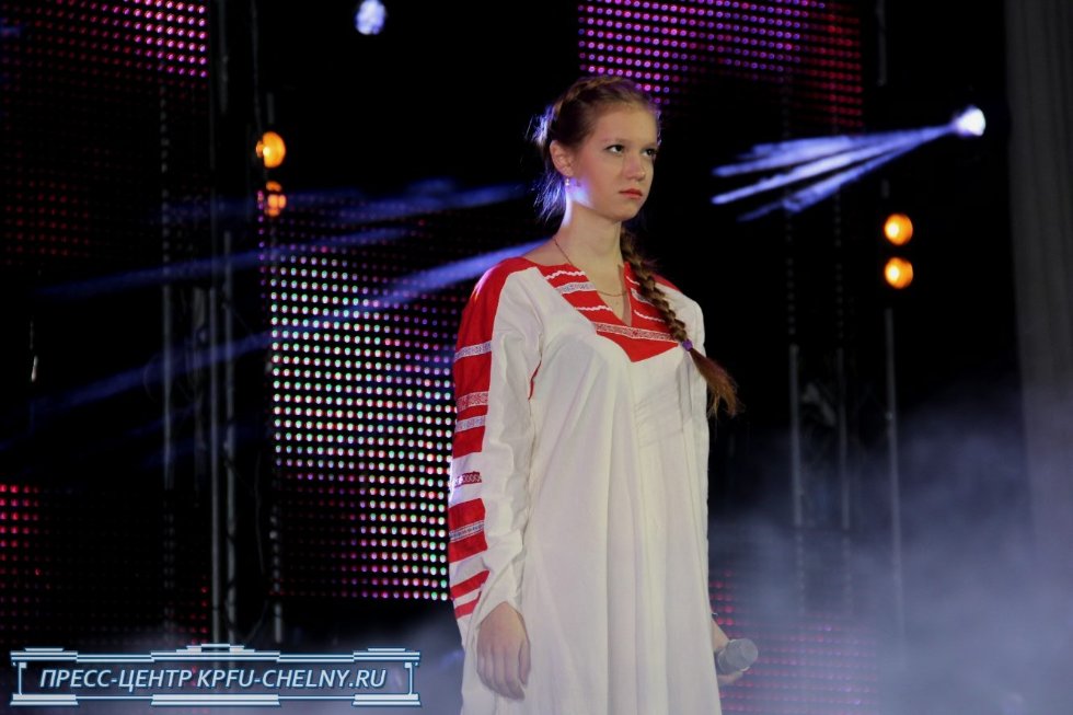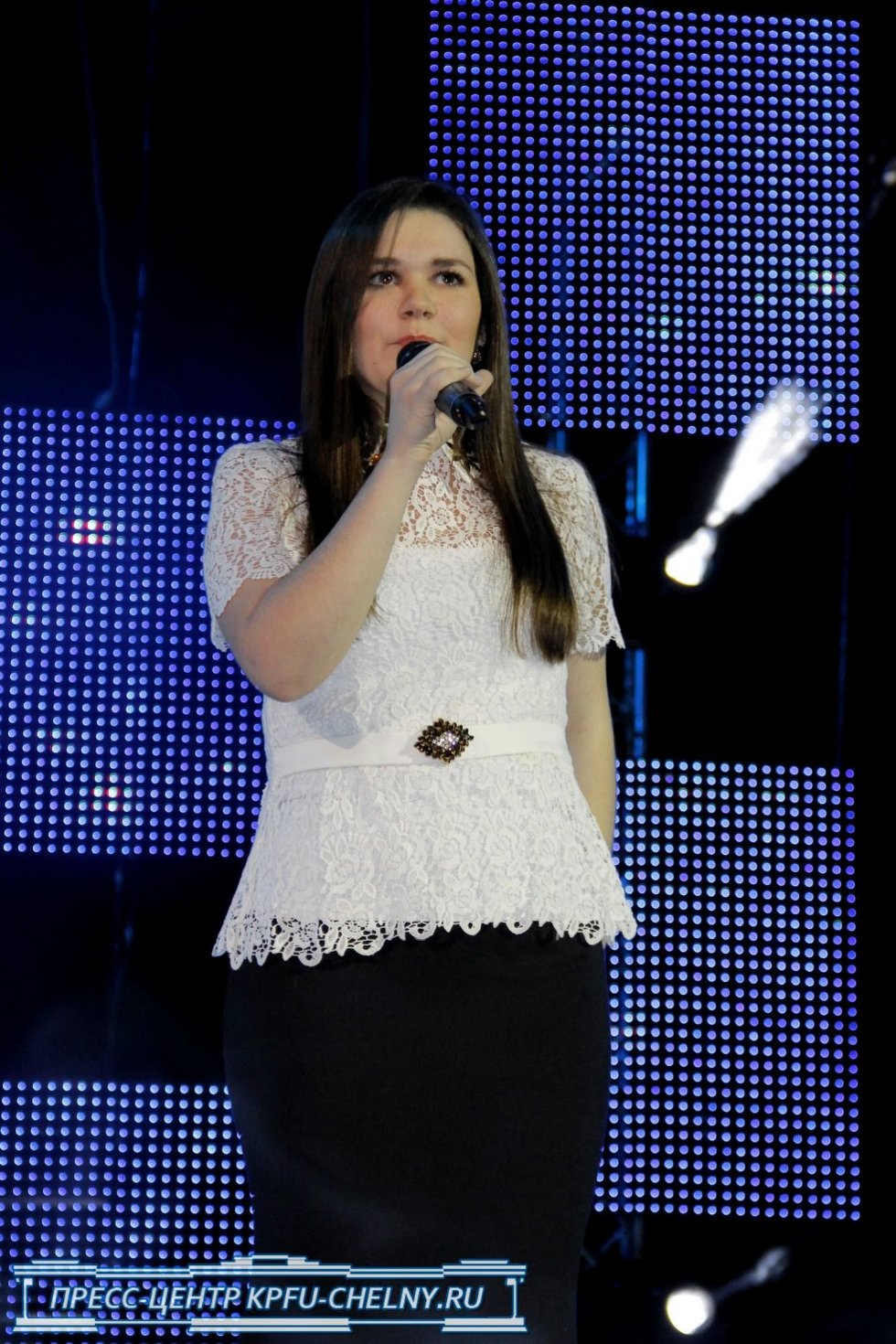 Поздравить первокурсников вышла на сцену и студентка КФУ, победительница проекта «Голос», участница международного конкурса «Евровидение» Дина Гарипова. Её песне «What if» подпевает весь зал и каждый стремиться запечатлеть ее выступление на свой мобильный телефон.