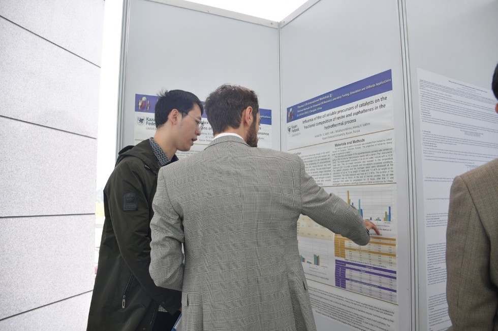 Большой интерес вызвал доклад старшего научного сотрудника НИЛ «Реологические и термохимические исследования» КФУ Чендонга Юаня, который работает в КФУ по программе обмена сотрудниками с Юго-западным нефтяным университетом. Работа, проводимая при поддержке Российского научного фонда, изучает механизмы окисления сырой и очищенной нефти с использованием методов дифференциальной сканирующей калориметрии под давлением (HP-DSC), термогравиметрии и Фурье-спектроскопии (TG-FITR), ЭПР и ЯМР и подразумевает поиск ответа на вопросы «Каким образом происходит окисление нефти? Какие процессы при этом протекают и т.д.».