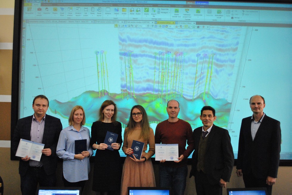 Специалисты ПАО «Татнефть», ООО «НОВАТЭК», ООО «Актуальные технологии» и АО «СНИИГГиМС» из Новосибирска, Самары и Тюмени приобрели теоретические знания в области интерпретации сейсмических данных, а также практические навыки кинематической и динамической интерпретации данных сейсморазведки. В ходе обучения они также рассмотрели секвенс-стратиграфическую и сейсмостратиграфическую интерпретации, атрибутивный анализ, AVO-анализ и сейсмическую инверсию. Практические занятия были посвящены интерпретации данных 3D сейсморазведки: загрузке исходных данных, сейсмостратиграфической привязке, трассировке отражений, построению скоростной модели, расчету структурных карт, а также применению сейсмических атрибутов при интерпретации и включению сейсмических данных в геологическую модель.