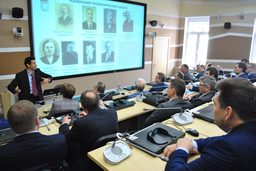 Проректор по научной деятельности КФУ, директор Института геологии и нефтегазовых технологий Данис Нургалиев рассказал о современных возможностях Казанского федерального университета и потенциальных направлениях совместной работы в ходе круглого стола, который прошел в стенах ИГиНГТ по итогам визита делегации.