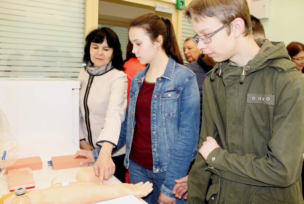 В Центре ребятам удалось побывать в учебных комнатах, предназначенных для теоретической подготовки, получения инструктажа и разбора проведенных практических занятий, блоке обучения базовым практическим умениям, где осваиваются врачебные навыки: все виды инъекций, катетеризации, клизмы, проведение зондирования и промывание желудка.