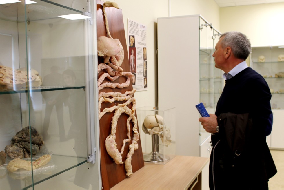 Гордостью коллекции музея являются препараты человеческого организма в натуральную величину – сосудистый и мышечный. Кроме того, в числе выставленных образцов - довольно представительная коллекция разного рода патологий организма человека, как врожденных, так и обусловленных болезнями.