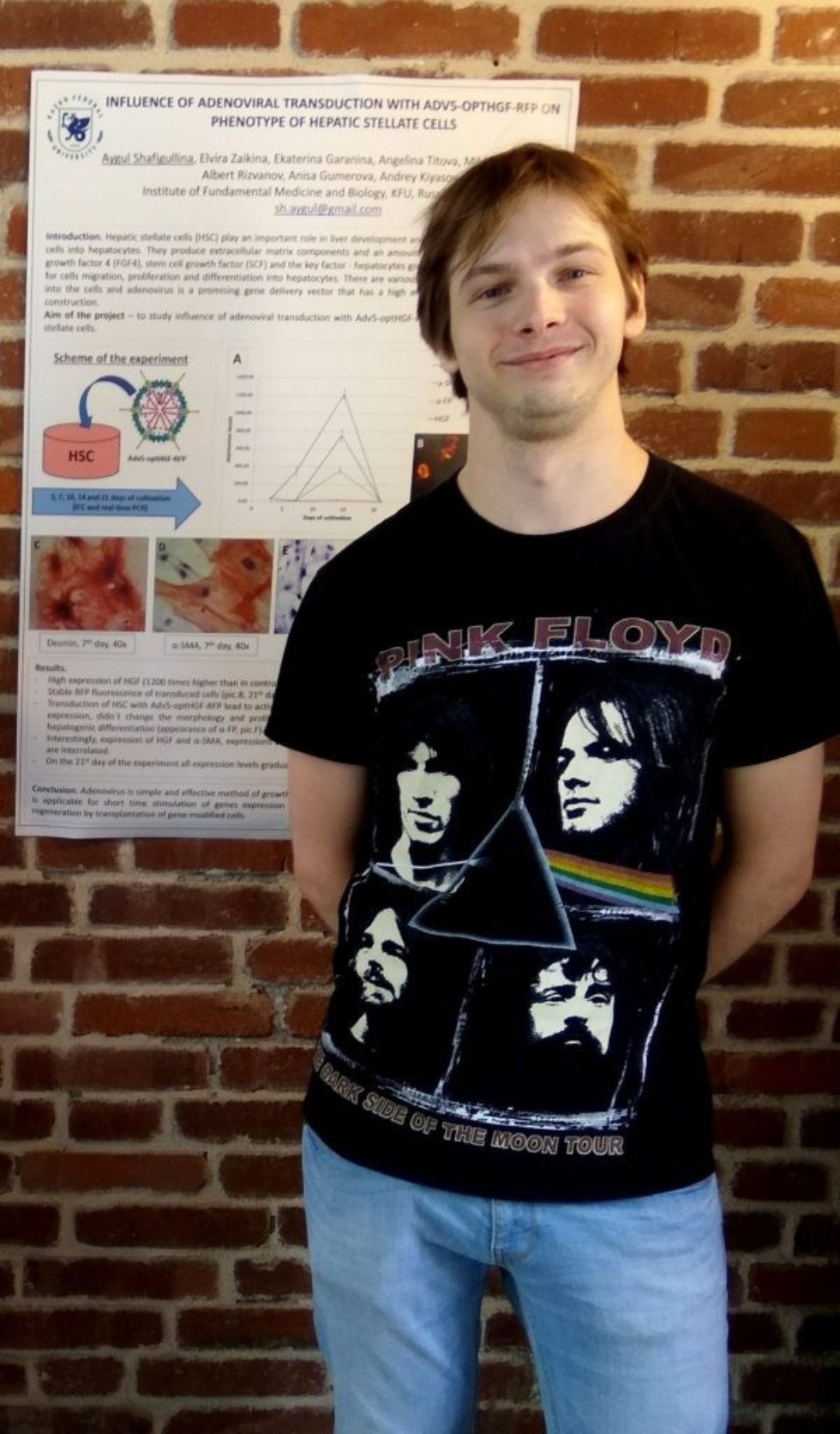 Объектом научной работы Айгуль Шафигуллиной стали звездчатые клетки печение, которые в последнее время причисляют к печеночным стволовым клеткам. «Генетическая модификация данной клеточной культуры рекомбинантным аденовирусом, экспрессирующими гены ростовых факторов гепатоцитов и основного фактора роста фибробластов-4 способствует усилению репопуляции трансплантированных клеток на модели острого повреждения печени у крыс», — подчеркивает исследователь.