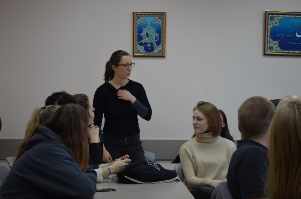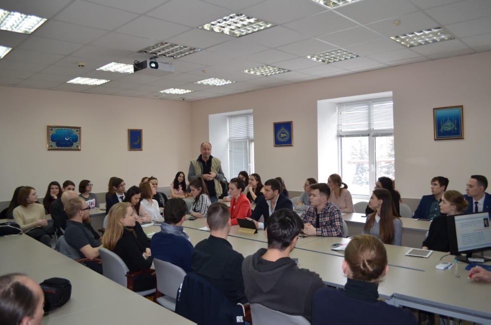 Профорг Высшей Школы международных отношений, истории и востоковедения Алина Писарева рассказала гостям института о республиканских образовательных центрах «Сэлэт», «Лига Студентов» и «Академия молодёжной дипломатии». Заместитель директора ИМОИиВ по воспитательной и социальной работе Виктор Евгеньевич Туманин совместно с культоргом ИМОИиВ Аидой Нигматуллиной раскрыли гостям принципы организации внеучебной деятельности студентов института.