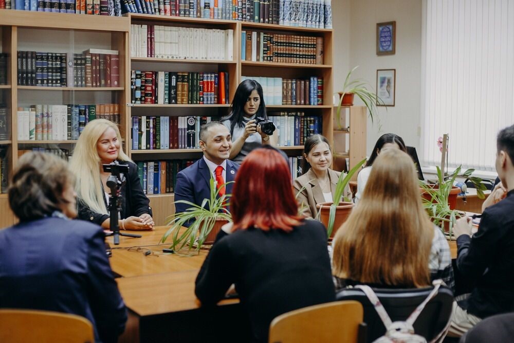 13 марта в Институте международных отношений прошла встреча с генеральным директором ООО "Всемирный Центр Поддержки Студентов", Бабаичешмехмаки Амирхоссейном Садоллахом. Он встретился со студентами, изучающими персидский язык, и поучаствовал в проведении занятия совместно с доцентом кафедры востоковедения, африканистики и исламоведения, Мастурой Ахмедовой.