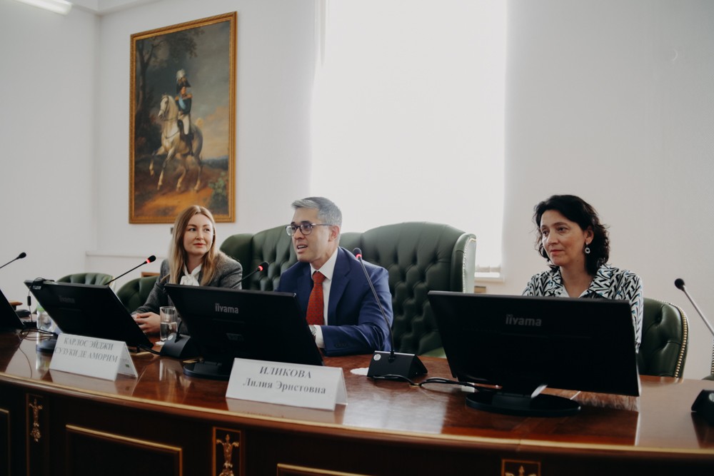 Лилия Эрнстовна Иликова подробнее рассказала о инициативах Латиноамериканского Центра ИМО КФУ в направлении сотрудничества с Бразилией: «Латиноамериканское направление является для нас очень перспективным, особенно в преддверии Саммита БРИКС, который пройдет в Казани в 2024 году. С Посольством Бразилии и бразильскими университетами мы налаживаем сотрудничество уже с 2017 года, когда в Казань приезжал представитель Посольства Бразилии Луис Энрике Морейра Коста. С тех пор мы установили контакт с Федеральным университетом Рио Гранде до Сул, вели переговоры с представителями университета Сан Пауло, обсуждалась академическая мобильность. Пандемия несколько затормозила развитие контактов, но за это время мы смогли пригласить преподавателей из Бразилии, запустить программу «Лекторат», что особенно ценно, так как до нашего участия только МГУ участвовал в этой программе. Также мы запустили Латиноамериканский центр, работали над совместными научными публикациями. Сейчас со стороны бразильских университетов есть активный интерес к сотрудничеству с нами в области латиноамериканских исследований, международных отношений, лингвистики, исследований БРИКС, и мы надеемся запустить новую активную фазу развития сотрудничества. С представителями посольства мы обсудили деятельность в рамках программы «Лекторат», возможности для организации совместных проектов с бразильскими университетами, вопросы академической мобильности и культурных обменов. Кроме того, на полях Международного форума «Формируя будущее», который прошел в Казани 7-9 июня, состоялась еще одна встреча – уже с Руководителем отдела науки, технологий и инноваций Посольства Бразилии Андре Жоао Рипл, с которым также обсудили перспективные проекты и лучшие практики сотрудничества между нашим университетом и бразильскими университетами».