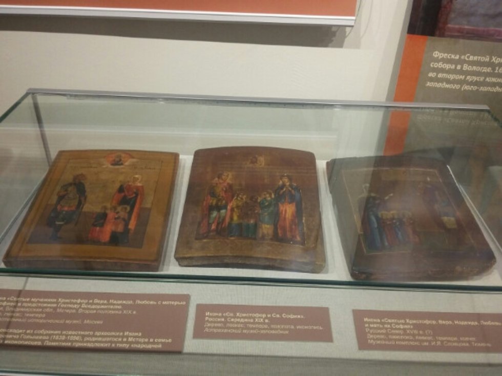На выставке представлены изображения Святого, собранные со всей России - участие принимают 11 регионов страны. Этнографический музей КФУ представил на выставке икону Святого Христофора, датированную второй половиной XVIII в.