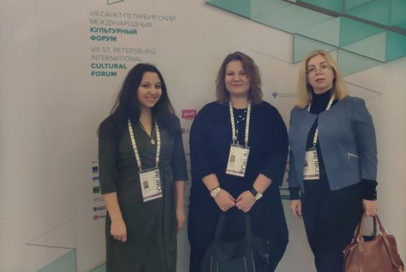 Сотрудники Института международных отношений КФУ, доцент кафедры всемирного культурного наследия Масалова Ольга Алексеевна, директор Этнографического музея, старший преподаватель кафедры истории Татарстана, археологии и этнологии Гущина Елена Геннадьевна и главный хранитель фондов Этнографического музея Хуснутдинова Ксения Юрьевна, приняли участие в работе Международного культурного форума, который проходил в период 14-16 ноября 2019 года в г. Санкт-Петербург. Программа форума была реализована в работе 17 секций, деловой площадки форума, фестивальной и конкурсной программах.