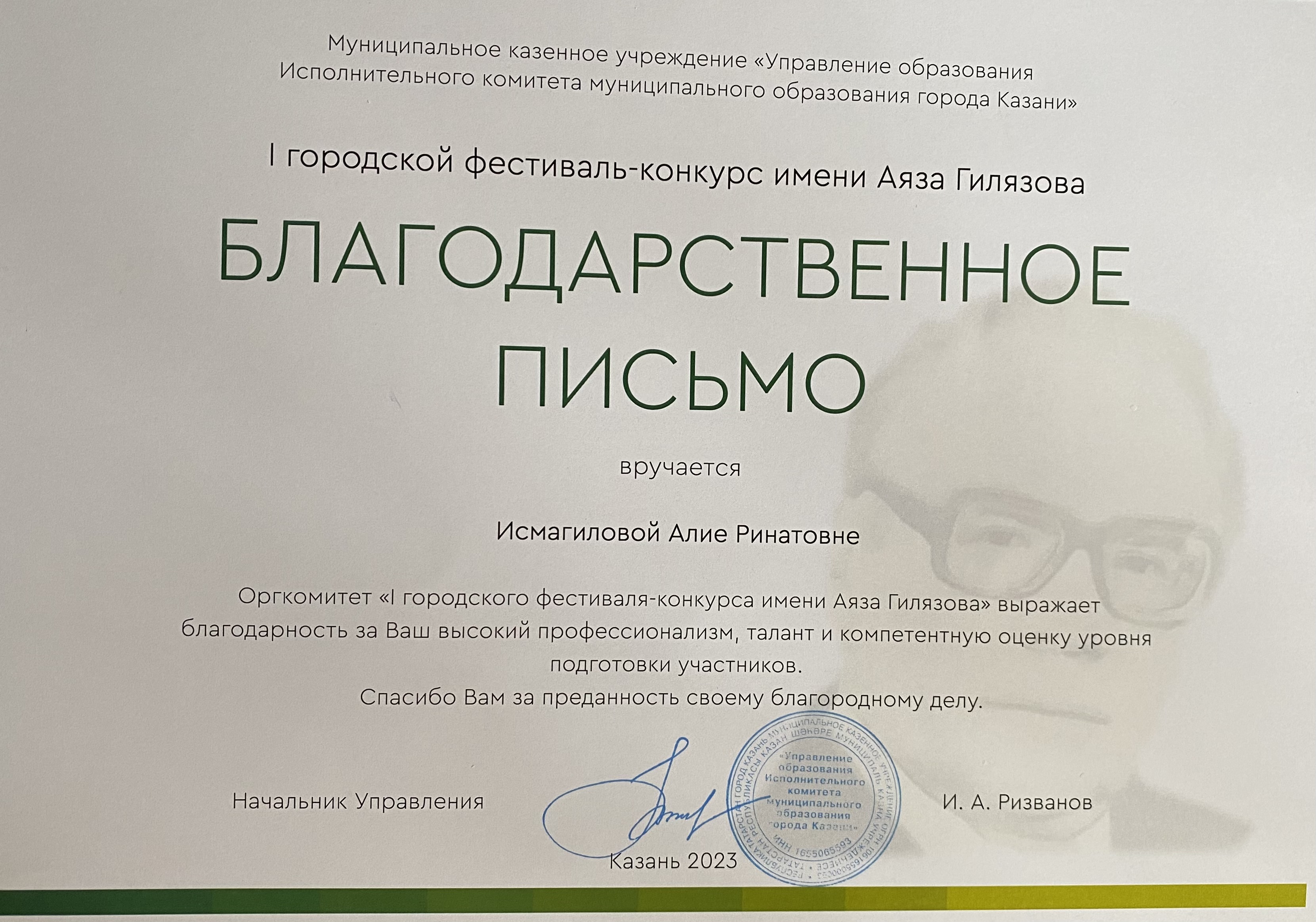Первый городской фестиваль – конкурс имени Аяза Гилязова прошёл 13 марта 2023 года в школе «Адымнар» г. Казани. Работы участников были представлены в различных секциях, в том числе «Перевод литературных произведений творчества А. Гилязова».