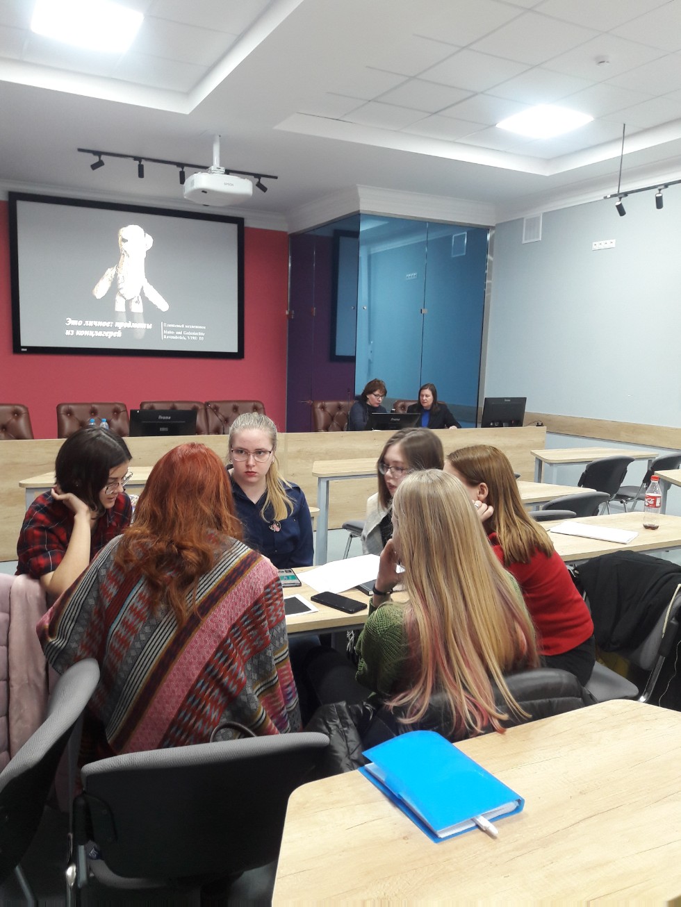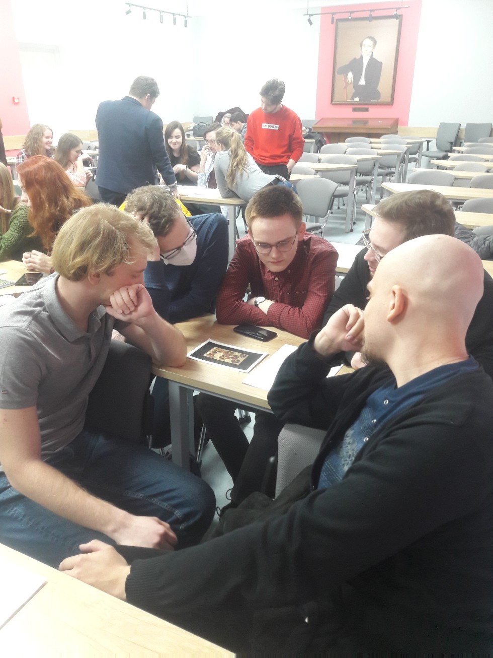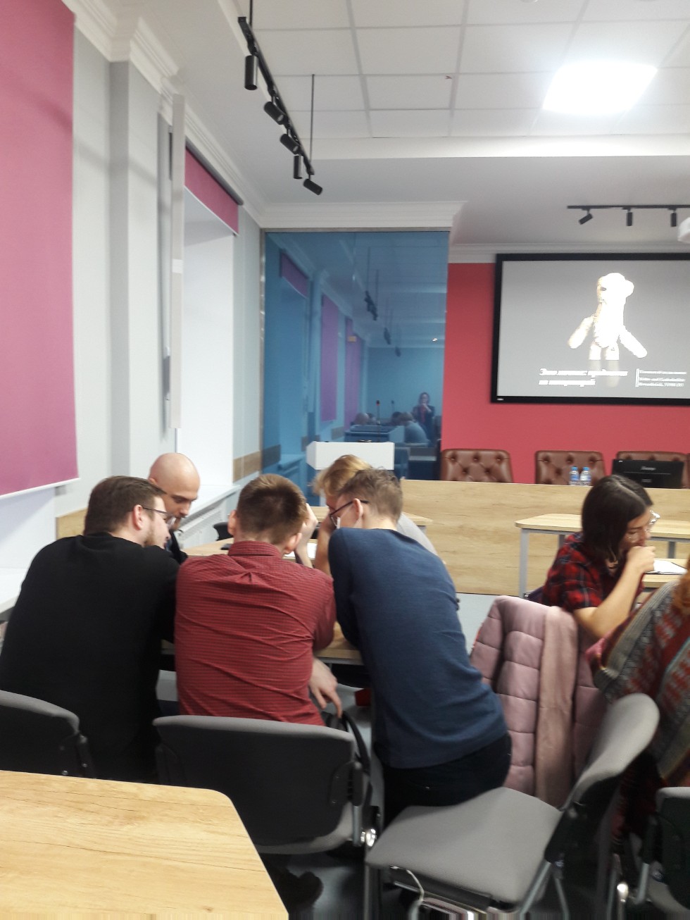 Участникам workshop было предложено и самим попытаться сформировать некую собственную репрезентацию тех или иных исторических артефактов, связанных с войной, в публичном пространстве. В качестве примеров были выбраны некоторые предметы, экспонирующиеся в рамках выставки «Это личное: предметы из концлагеря», которая проходит сейчас в Международном Мемориале в Москве. Студенты, поделенные на четыре группы, очень креативно подошли к решению задачи, представив несколько вариантов интерактивной, актуальной с точки зрения современных музейных пространств и эмоциональной репрезентации предложенных предметов, а одна группа даже придумала своеобразный художественный рассказ о своем объекте, причем рассказ со счастливым концом. В завершении работы Вера Сергеевна Дубина подчеркнула, что ей очень понравились идеи, предложенные казанскими студентами-историками.