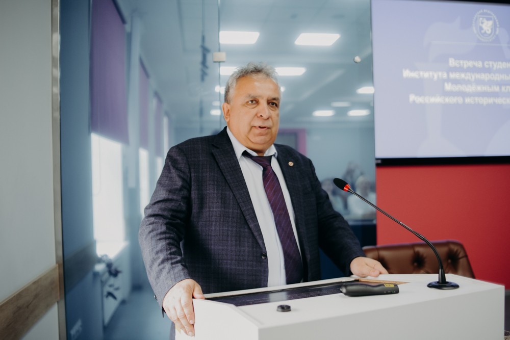 Далее слово взял директор Института международных отношений Рамиль Хайрутдинов, отметив, что взаимоотношения с Российским историческим обществом в Татарстане, Казани, на уровне КФУ и Института международных отношений выстраиваются продуктивно. Казань - второй город после Санкт-Петербурга, предложивший обществу создать на своей базе полноценное отделение в 2012 году. Оно было открыто в КФУ и с тех пор выстроены тесные связи с учеными из других вузов республики. Работает также научный центр Российской академии наук. КФУ сосредотачивает на своей площадке огромное количество специалистов в области изучения истории культуры, истории наследия.