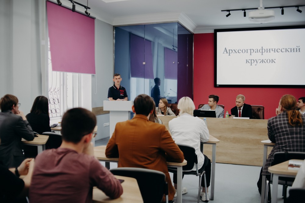 Далее представители студенческих обществ и кружков презентовали кратко свою деятельность. В частности, было рассказано о работе таких студенческих сообществах, как Археологический, а также Археографический кружок, студенческих научных кружках «Окно на Восток», «Pax Europaea», «Глобус», «АГРАФ», «Дым Отечества», «СМЫСЛЫ ЦИФРЫ», «Этнофорум» и научного семинара «Античный понедельник»