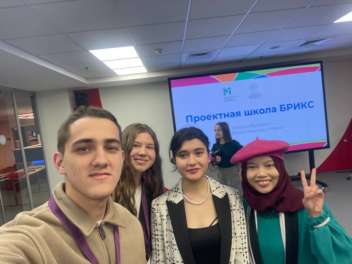Представители кафедры международных отношений, мировой политики и дипломатии ИМОИиВ - преподаватель кафедры МОМПиД Халид Гамдан, выпускница кафедры Дильбар Садыкова и студенты приняли участие в проектных школах БРИКС и ОИС.