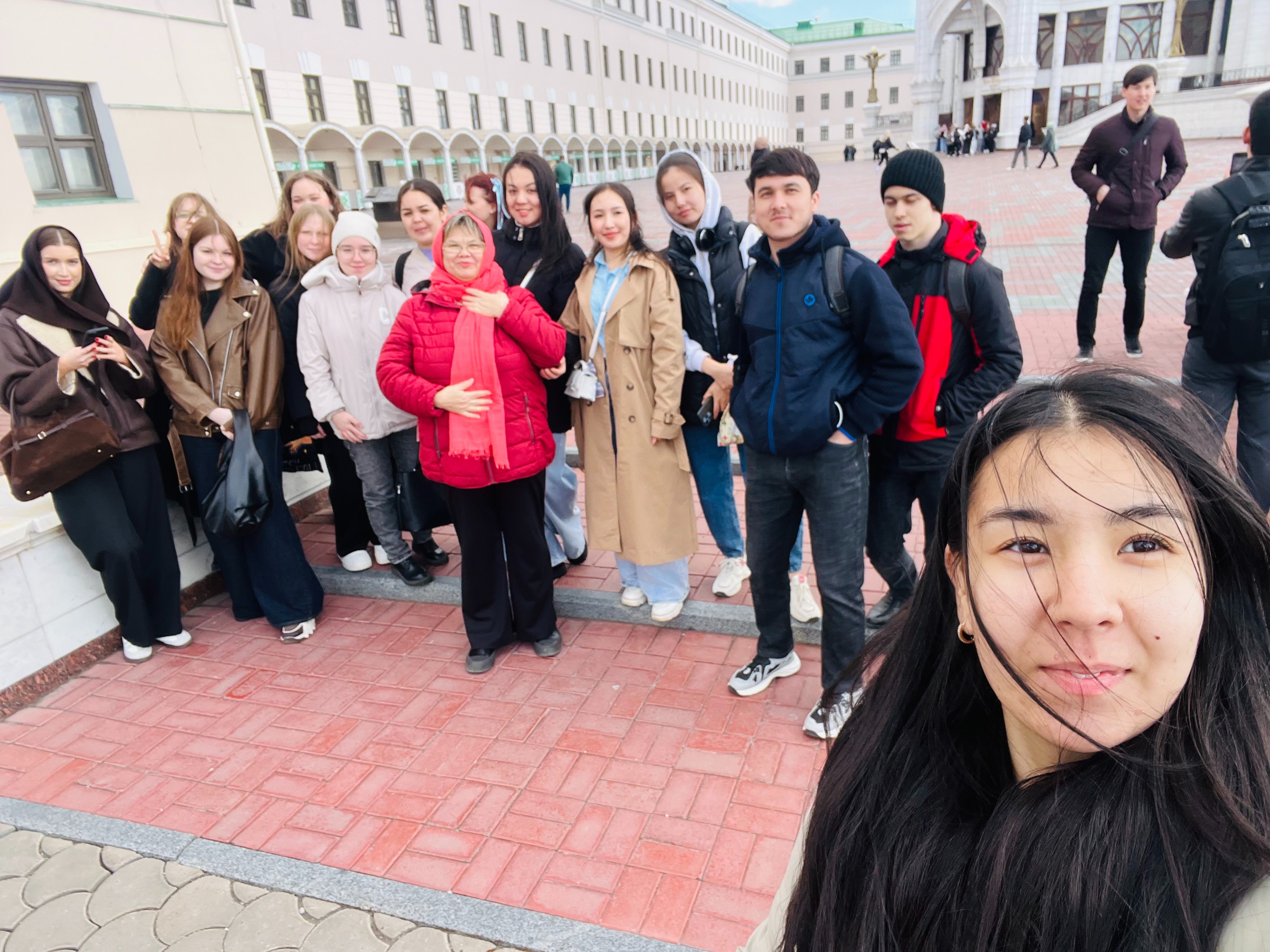 В понедельник 14 апреля студенты группы 04.2-410 вместе с куратором Хораськиной Р.И. в рамках мероприятий, приуроченных к 80-летию Победы в Великой Отечественной войне, посетили памятник Герою Советского Союза Мусы Мустафовича Джалиля у стен Казанского Кремля. Студенты познакомились с биографией Героя, читали стихи поэта. Далее экскурсия продолжилась по Кремлю с посещением Благовещенского собора и мечети Кул-Шариф