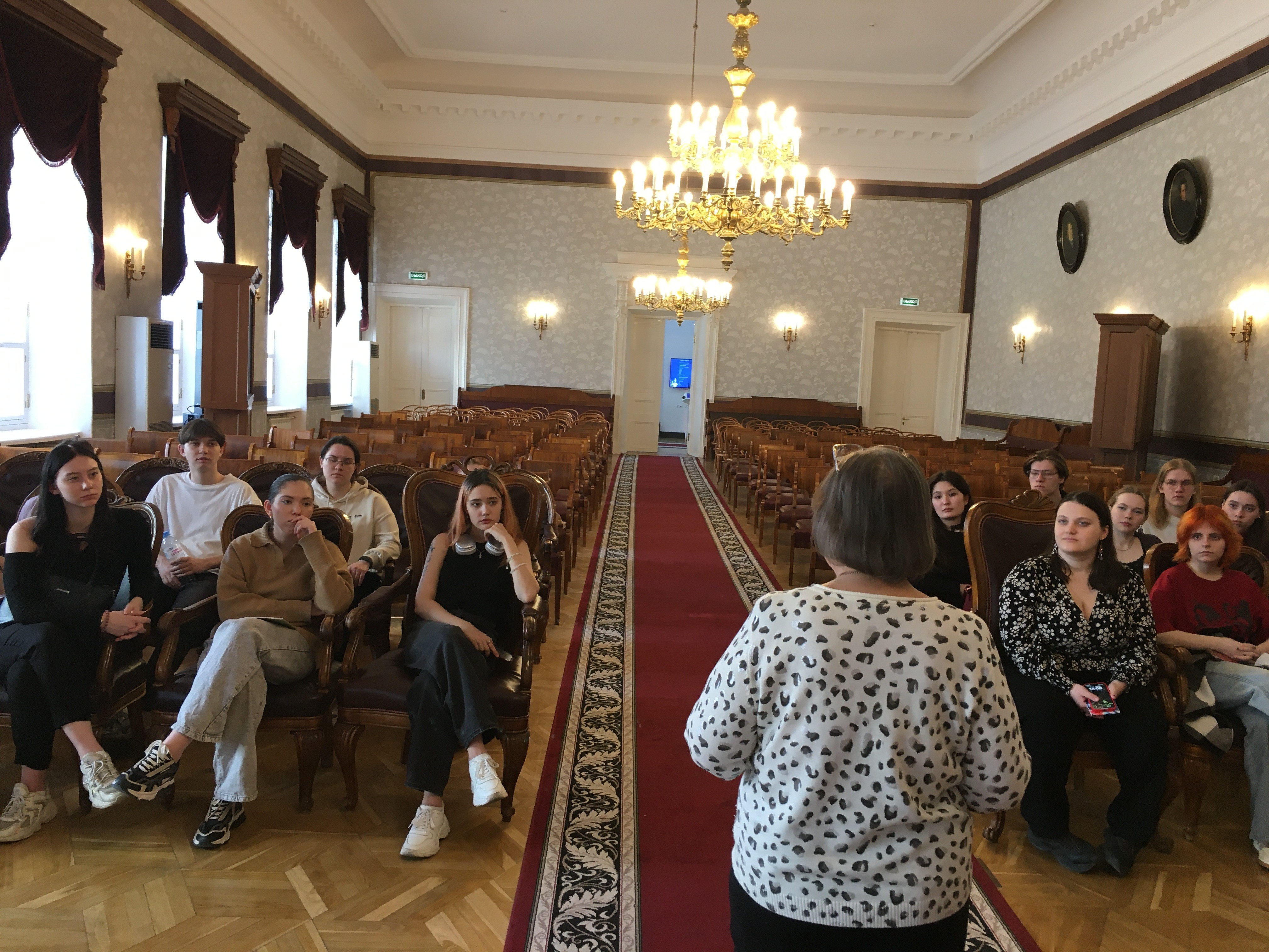 Второкурсники-культурологи долго ждали экскурсию в музей истории КФУ. И, наконец, 15-го апреля важное событие в их жизни состоялось! От старейшего сотрудника музея истории КФУ Марии Георгиевны Хабибуллиной они впервые узнали о корпоративных традициях и научных школах Казанского университета, выдающихся открытиях, имена великих ученых. Постепенно выражения лиц студентов менялось. Даже скептически настроенные студенты постепенно все более заинтересовано разглядывали фотографии и экспонаты на витринах. Их завораживало пространство бывшей Крествоздвиженской церкви, гипнотизировали интонации голоса Марии Георгиевны. В актовом зале культурологи погрузились в историю ярких событиях в жизни alma mater XIX–XX веков.