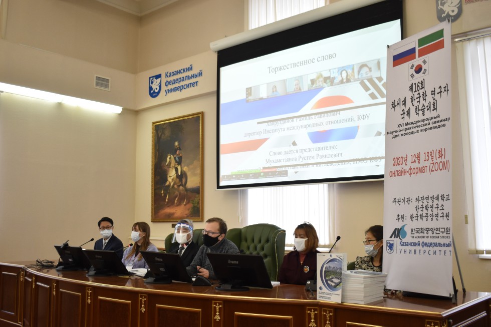 В минувший вторник, 15 декабря, на базе ИМО КФУ в смешанном формате состоялся XVI Международный научно-практический семинар для молодых корееведов, организованный НОЦ Центром исследований Кореи «Корееведение» ИМО КФУ в рамках проекта «Базовая университетская программа исследований Кореи КФУ» при поддержке Службы содействия развития корееведения Академии корееведения.