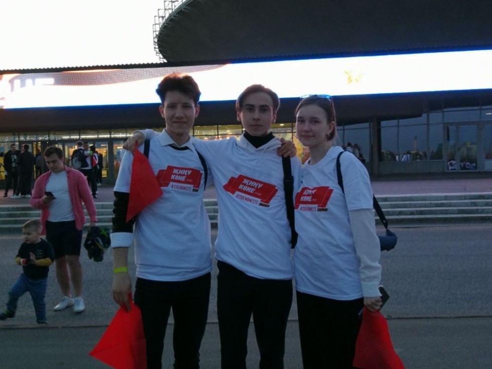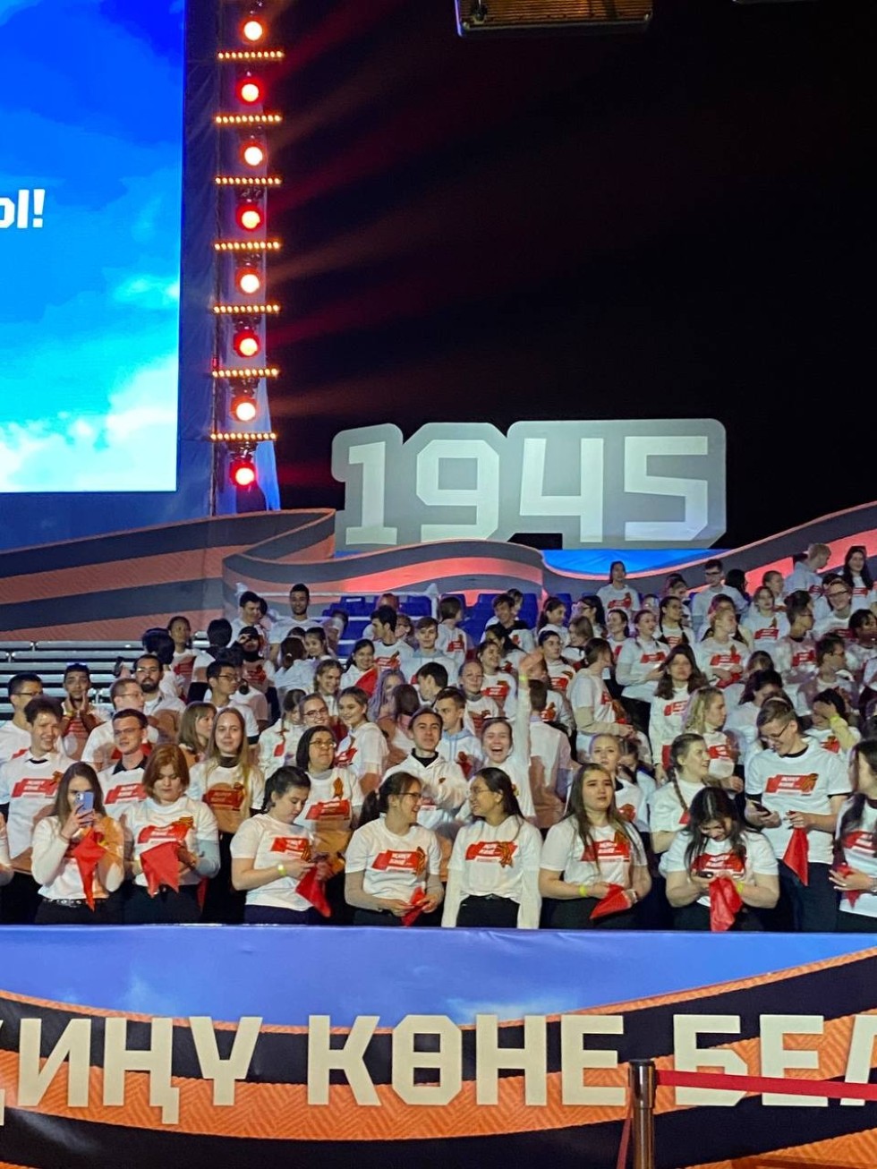 Студент группы 100-103 Иванов Антон и студентка группы 100-105 Сатаева Кристина участвовали в акции "Поющая Казань", вошли в состав 1000-го хора студентов из разных университетов города, исполнили песни военных лет на главной площади города.