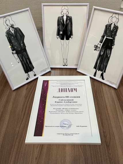 ▪️дипломом 3 степени удостоены эскизы коллекции Сайткужиной Карины.