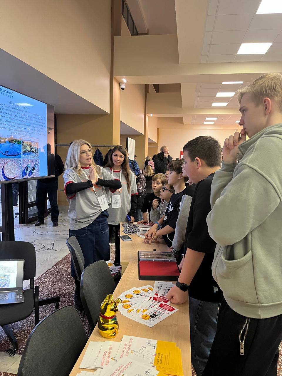 28 ноября 2025 года в КФУ в рамках PROнауки преподаватели кафедры финансовых рынков и финансовых институтов Института управления экономики и финансов КФУ, доцент Никонова Татьяна Викторовна и старший преподаватель Ахмадуллина Алия Альбертовна, провели интерактивную игру о Деньгах для школьников и их родителей. Мероприятие позволило участникам разобраться в основах финансовой грамотности и денежного обращения, сделав процесс познания интересным и познавательным.