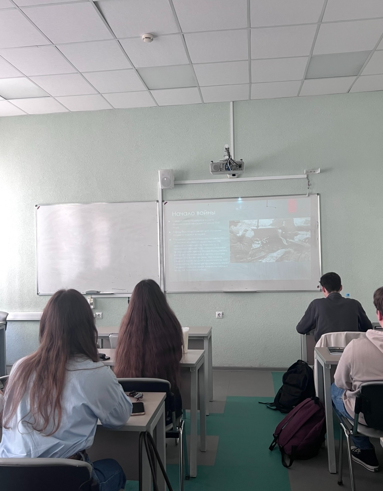 празднованию 80-й годовщины Победы в Великой Отечественной войне, на тему "Сражения Великой Отечественной войны". Студенты приняли активное участие, рассказав про оборону Севастополя. Севастополь подвергся налету фашистской авиации 22 июня 1941 года. Организованное сопротивление и эвакуация защитников города продолжались до 2 июля 1942 года. Защитники Севастополя продолжали героически сражаться на полуострове Херсонес. Важную роль в обороне Севастополя сыграли жители, которые участвовали в строительстве оборонительных сооружений, изготовляли оружие и боеприпасы для фронта, оказывали помощь раненым. Свыше 15 тысяч севастопольцев вступили в народное ополчение.
