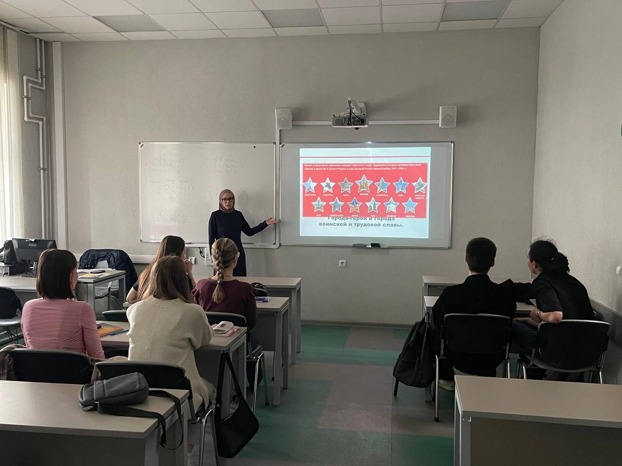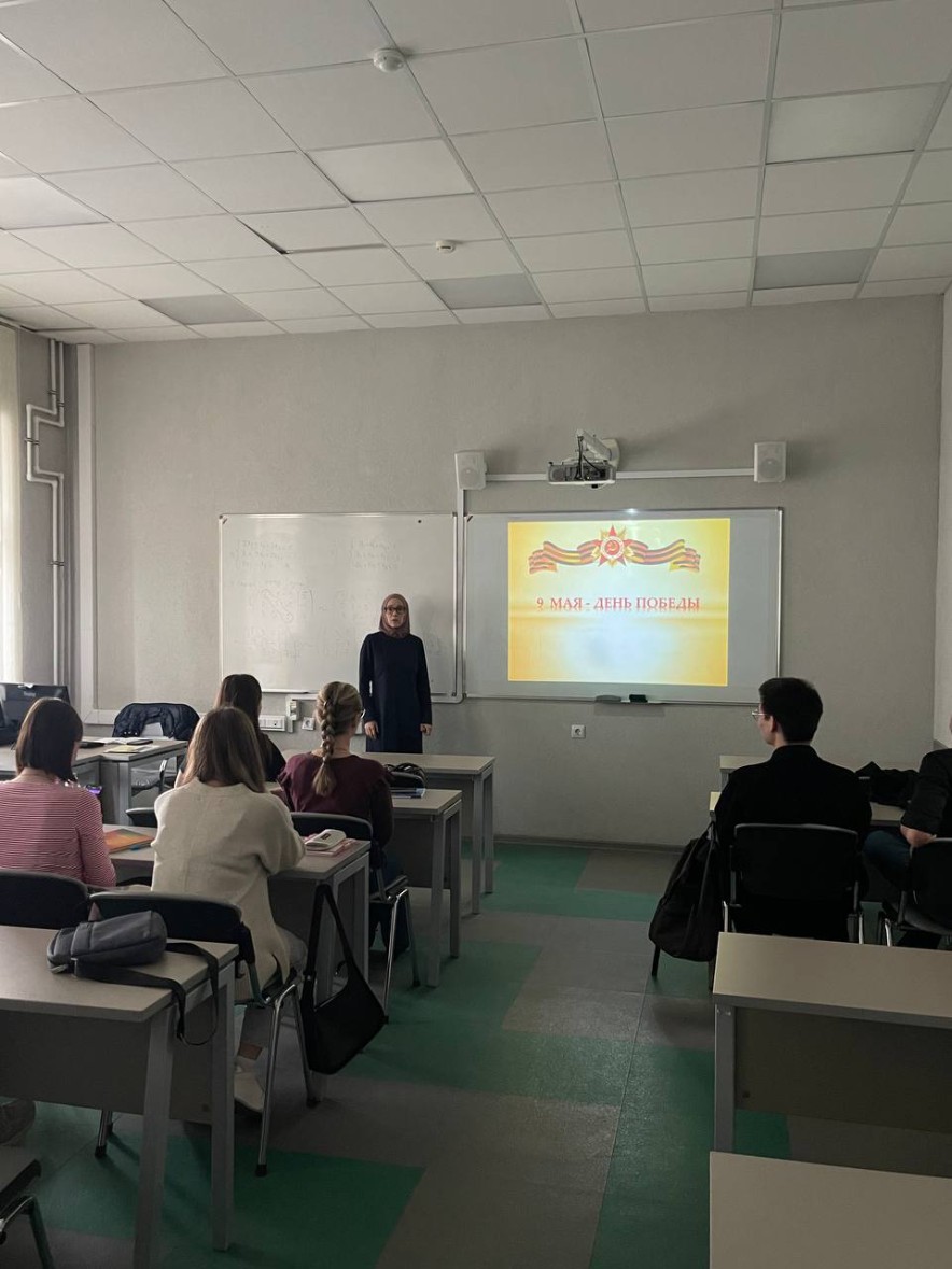 2 апреля 2025 года преподаватель кафедры проектного менеджмента и оценки бизнеса Исхакова Гулия Махмутовна провела кураторский час в учебной группе 14.1-270, посвященный Дню Победы 9 мая и 80-летию Великой Отечественной Войны. Мероприятие получило название «Дорогами Памяти».