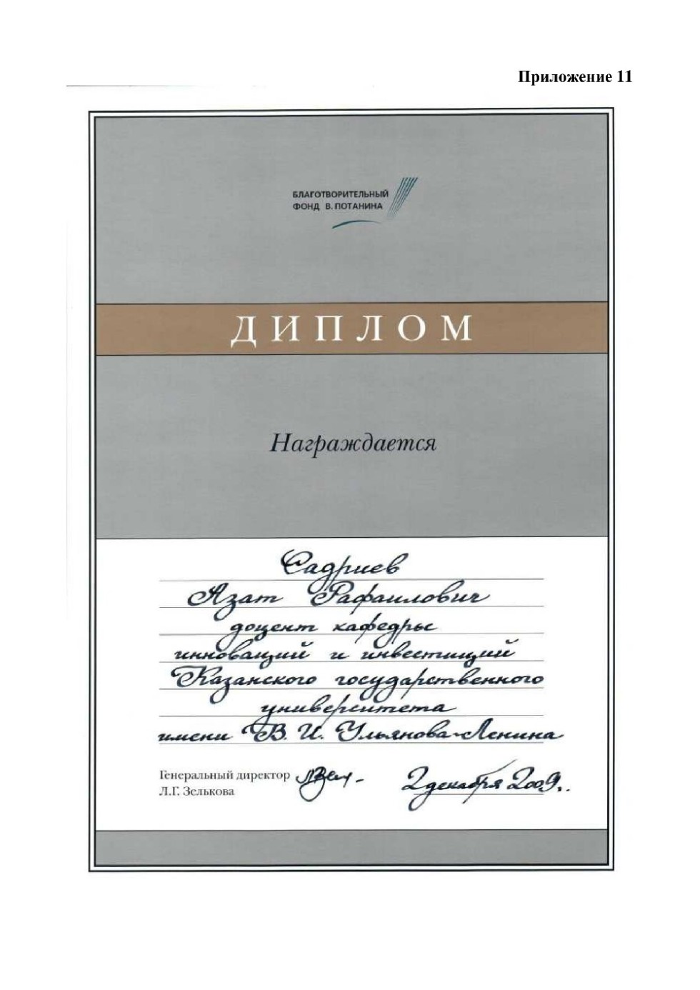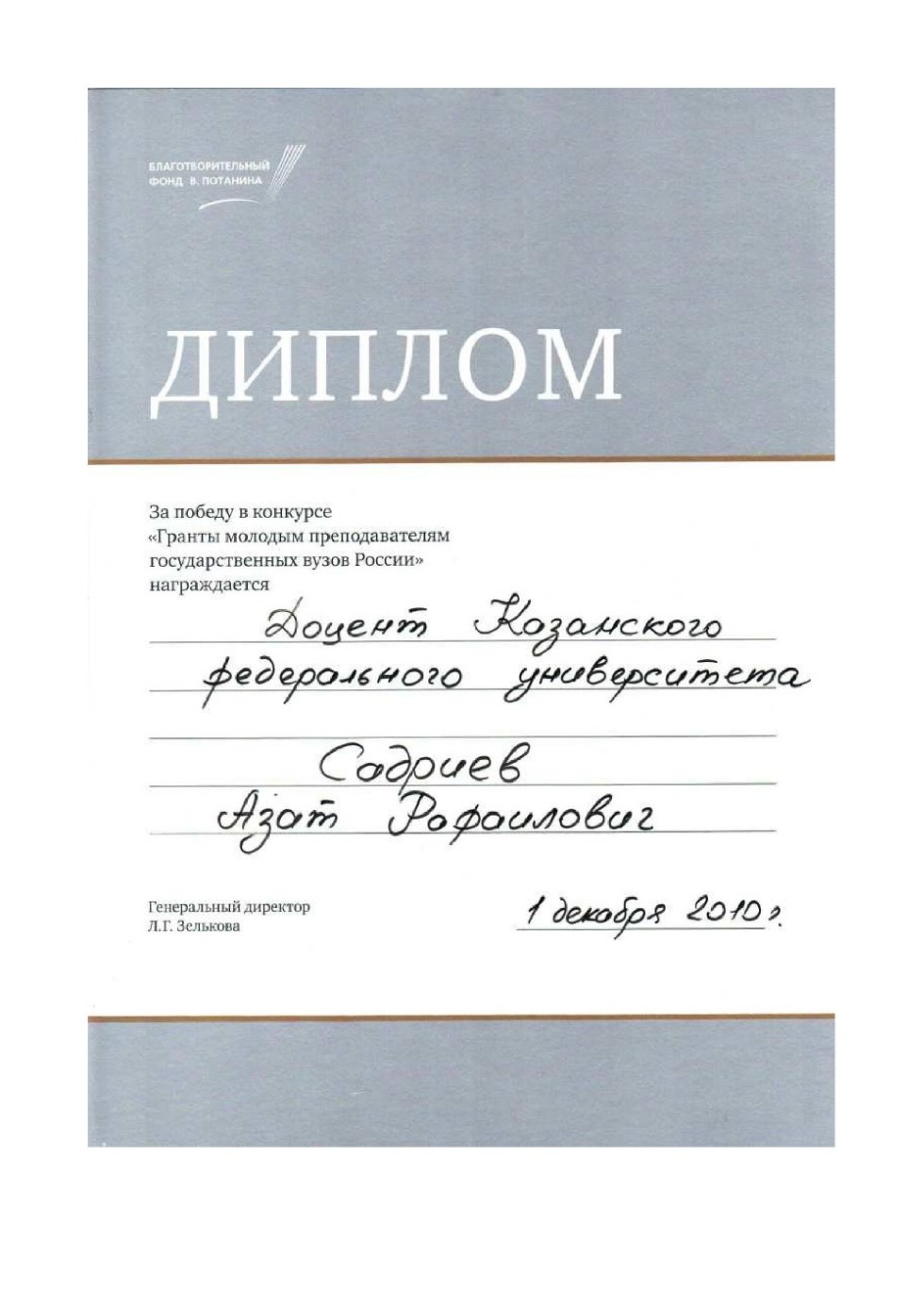 ‑ гранты Благотворительного фонда В. Потанина - научный руководитель к.э.н., доц. Садриев А.Р. (2009, 2010, 2011 гг.).