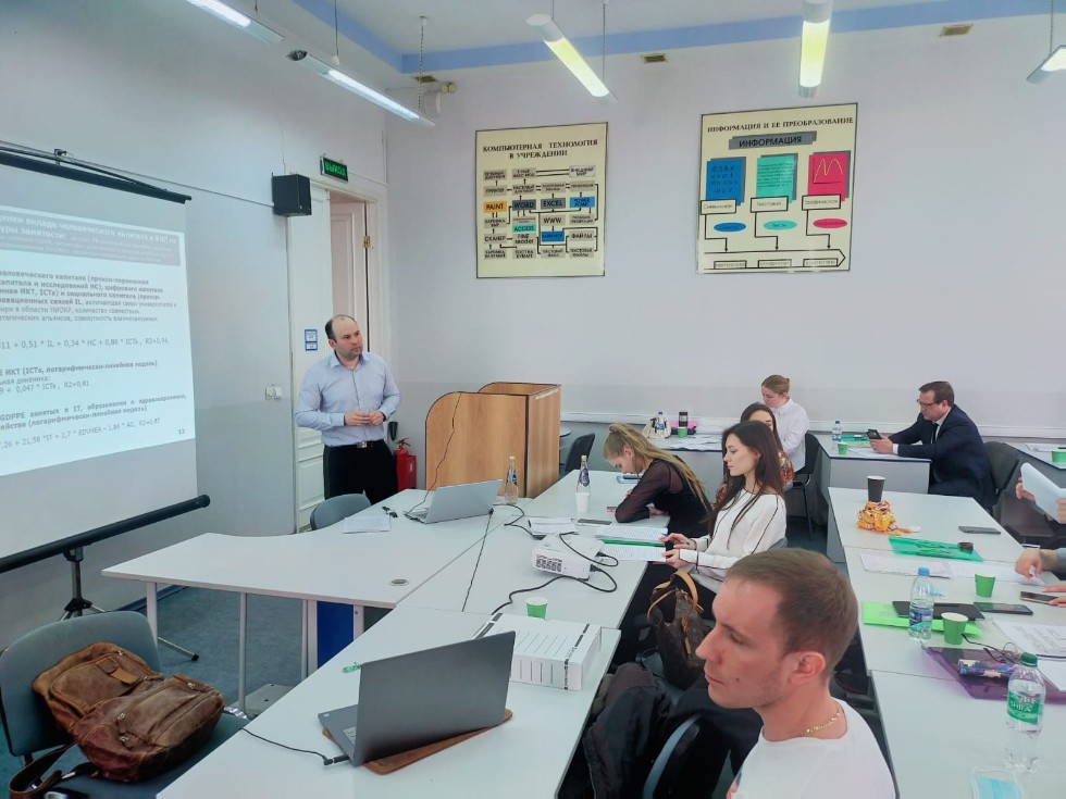 В следующую пятницу, 7 апреля, также на базе кафедры управления человеческими ресурсами прошло расширенное заседание с участием кафедры территориальной экономике по вопросу предзащиты двух докторских диссертаций. Светлана Игоревна Грудинина представила свое исследование на тему «Развитие теории влияния воспроизводства нематериального капитала региона на социально-экономические системы» по специальности 08.00.05 — экономика и управление народным хозяйством (региональная экономика), научный консультант доктор экономических наук, профессор Е.В. Фахрутдинова.